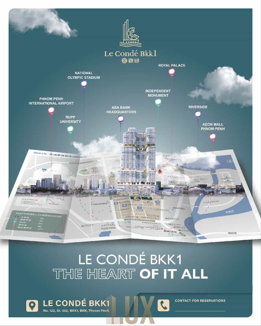 Welcome to the epitome of luxury living at Le Condé, an exceptional development that redefines the skyline of Phnom Penh’s prestigious BKK1 area. This exclusive residential masterpiece goes beyond mere living spaces; it offers an unparalleled lifestyle experience characterized by meticulous design, world-class amenities, and an unwavering commitment to sophistication.