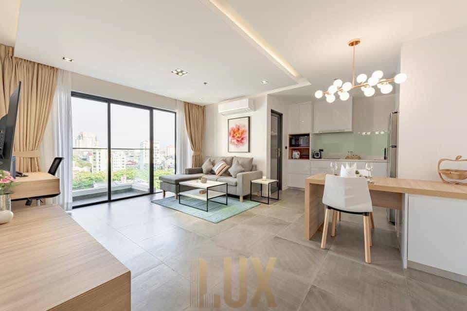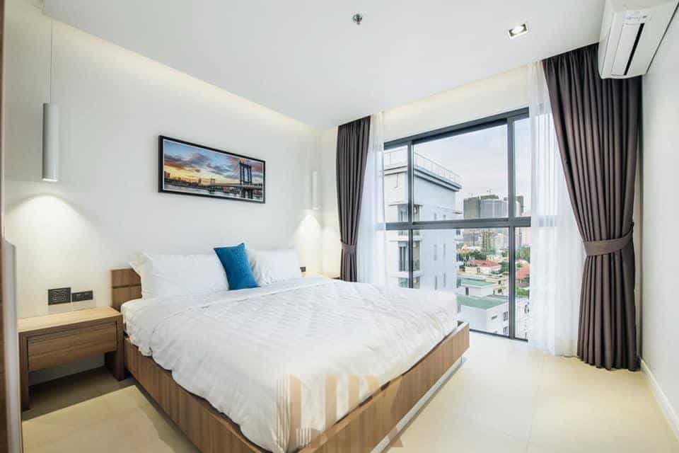Discover urban living with this sleek and modern 1 bedroom, 1 bathroom apartment nestled in the vibrant heart of BKK 1, Phnom Penh’s premiere neighborhood for both tourists and locals. This high-rise haven on the 12th floor offers a serene retreat from the bustling city below, paired with the convenience of metropolitan life.