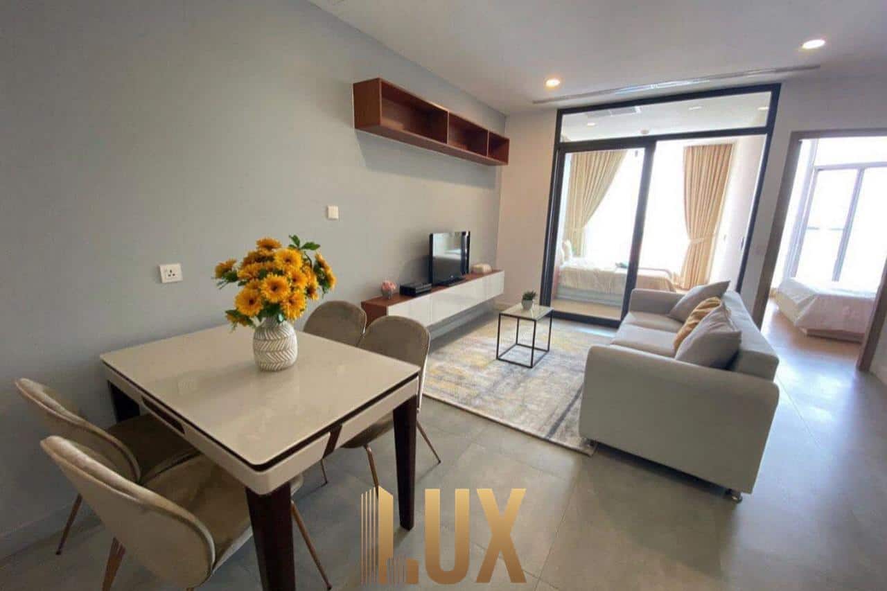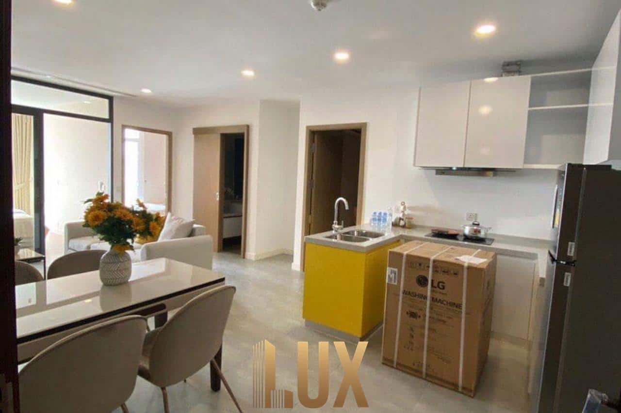 It comes with 2 bedrooms, 1 bathroom, a kitchen, living room, and a balcony on the 14th floor offering splendid views of the city skyline and the Tonle Sap.