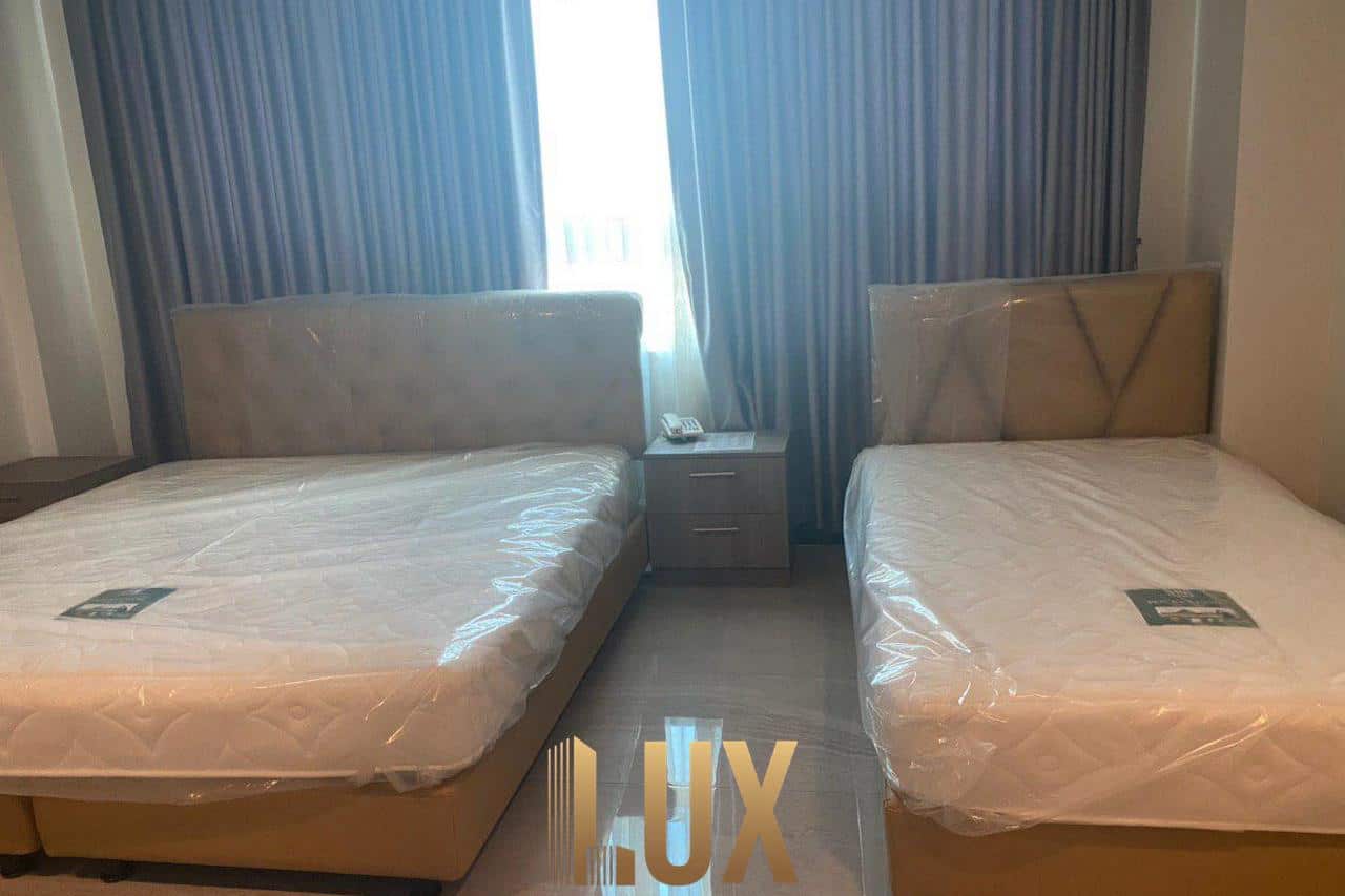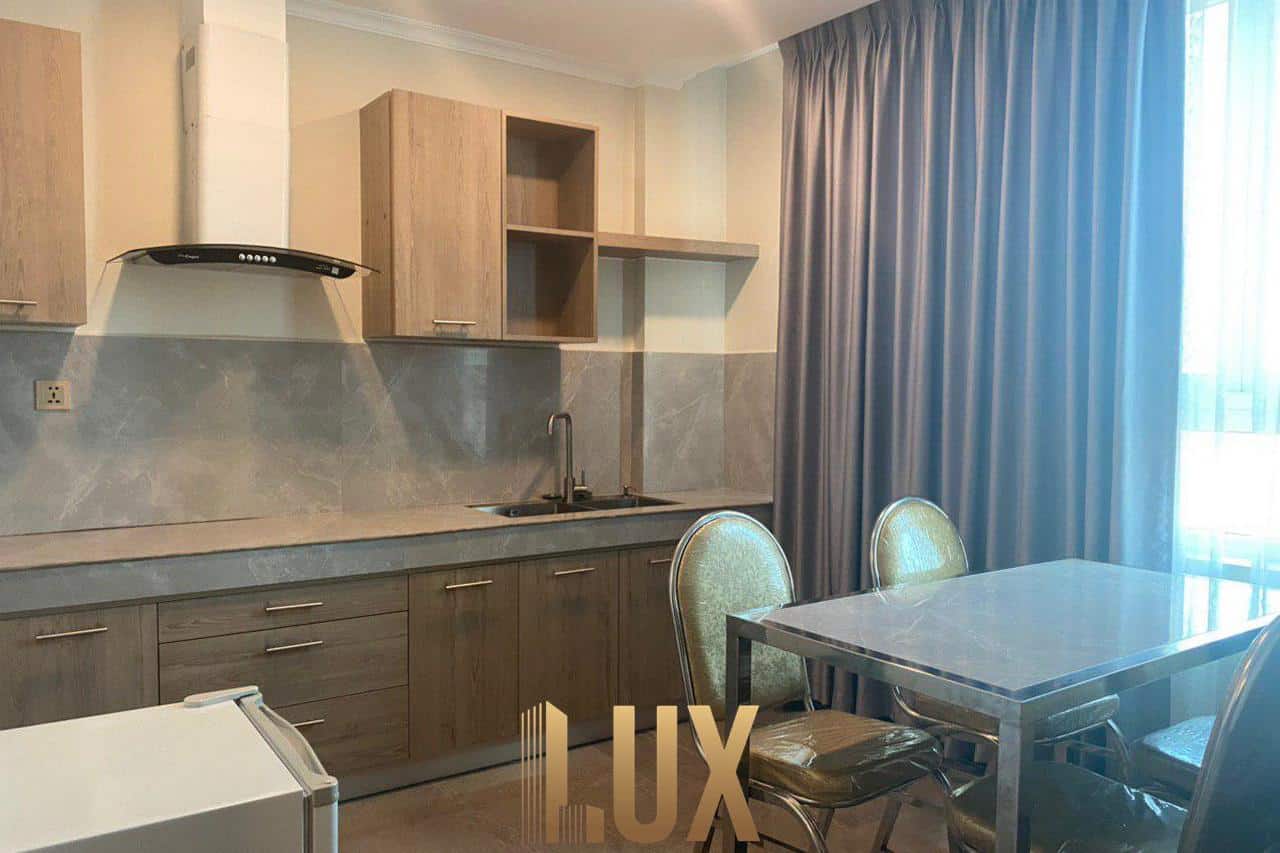 1 bedroom, 1 clean bathroom, 1 kitchen, 1 living room, 1 balcony on10 floors with full furnished Air Conditioner, TV, Refrigerator, Hot water, elevator. Service apartment as Free security 24 hours, TV cable, internet, cleaning, fitness gym room, and parking for motor cost 15$ per month.