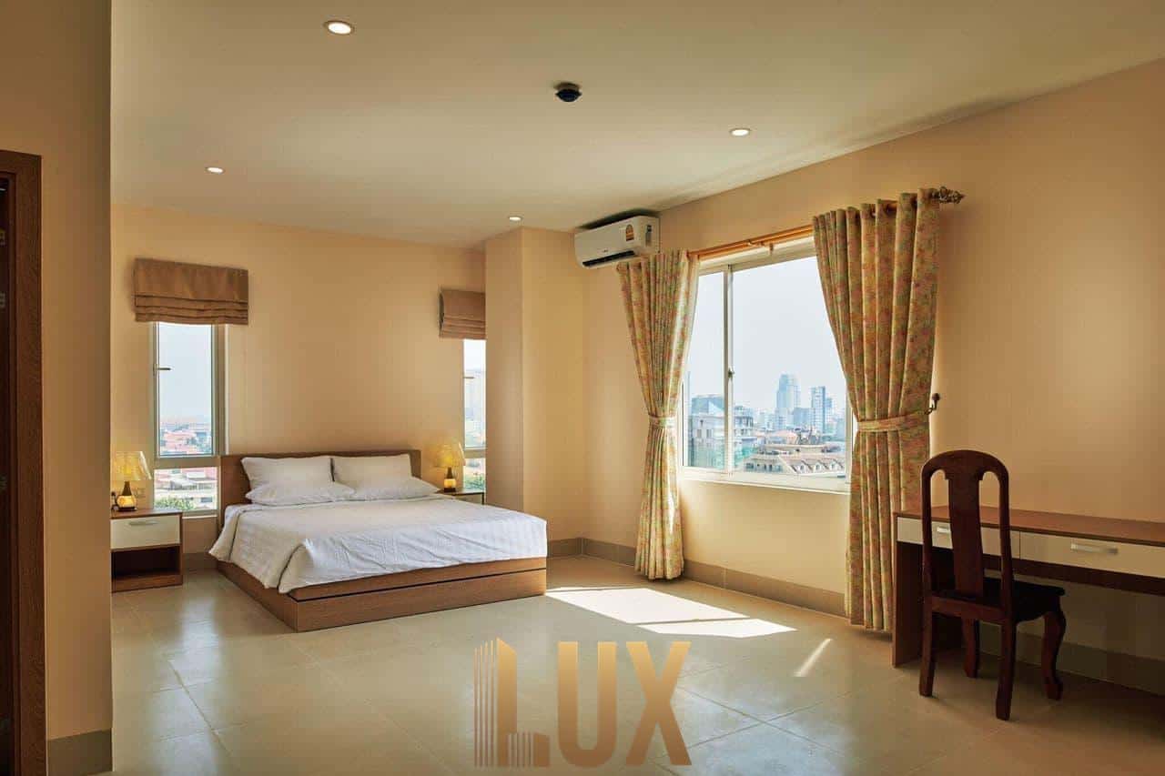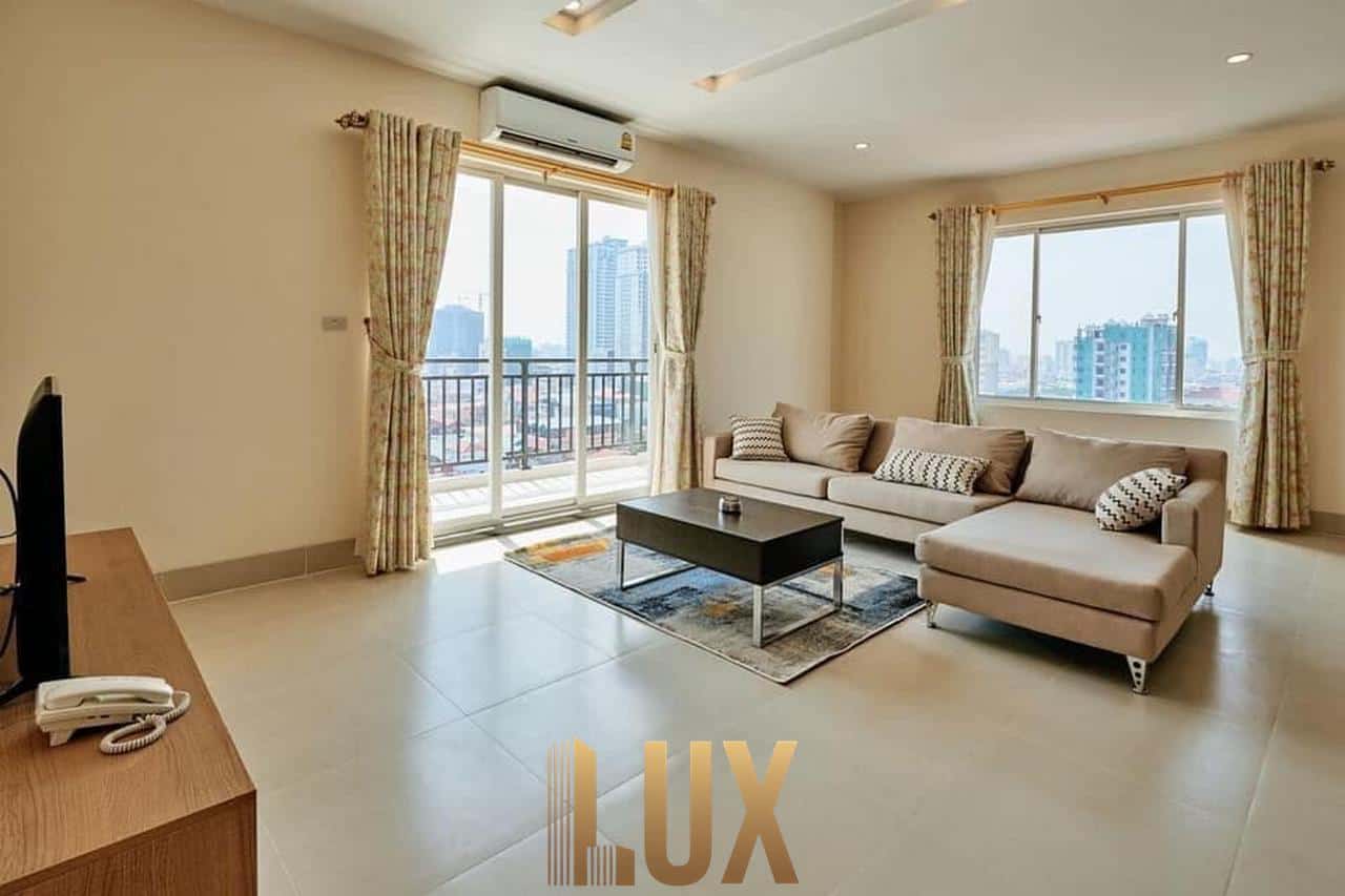 This two-bed property is located in the Sangkat Chaktomuk area of central Phnom Penh. It offers an easy commute to the city centre. The location is within walking distance of a wide variety of shops, bars, restaurants, medical facilities, and entertainment venues.
