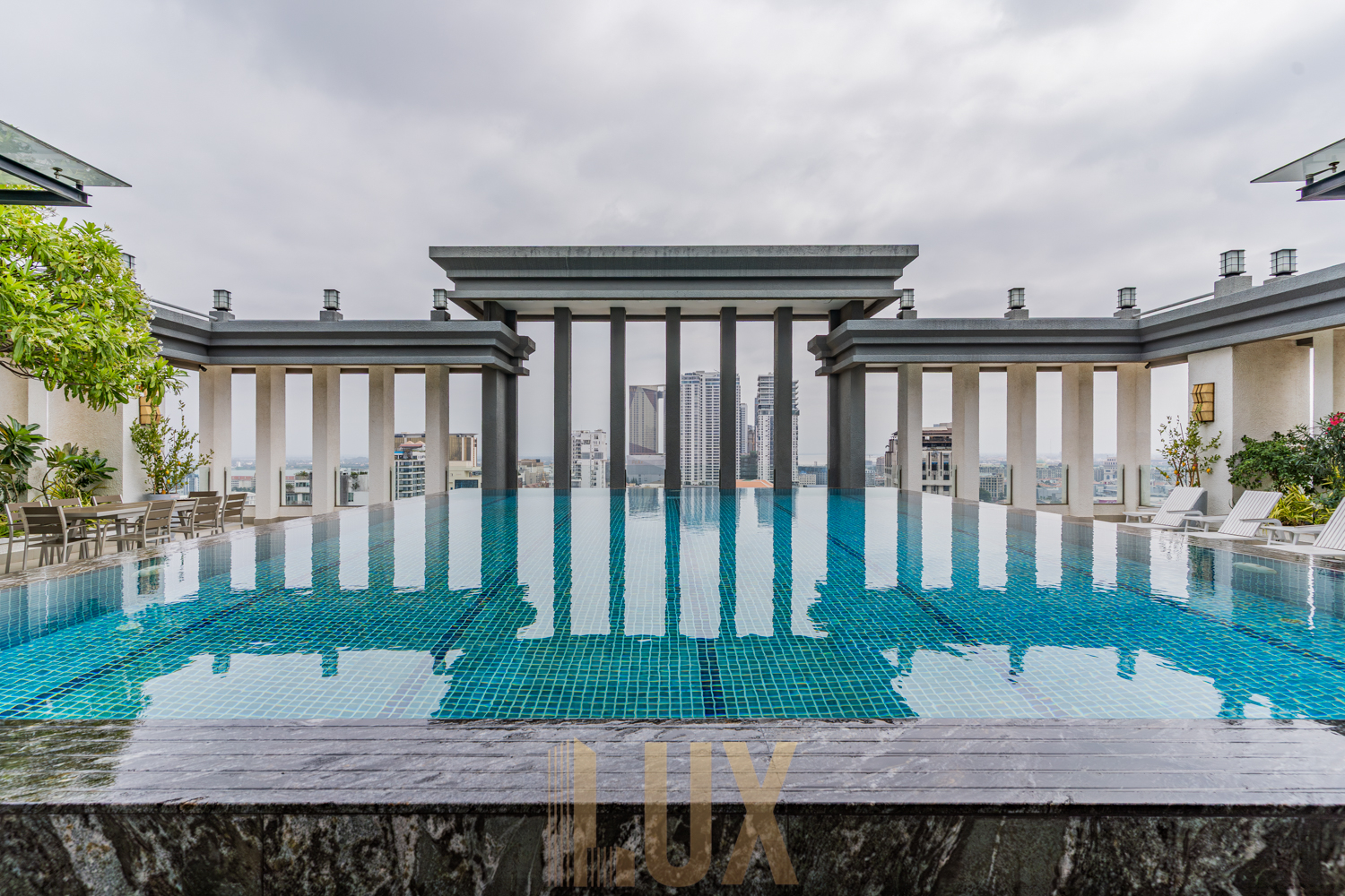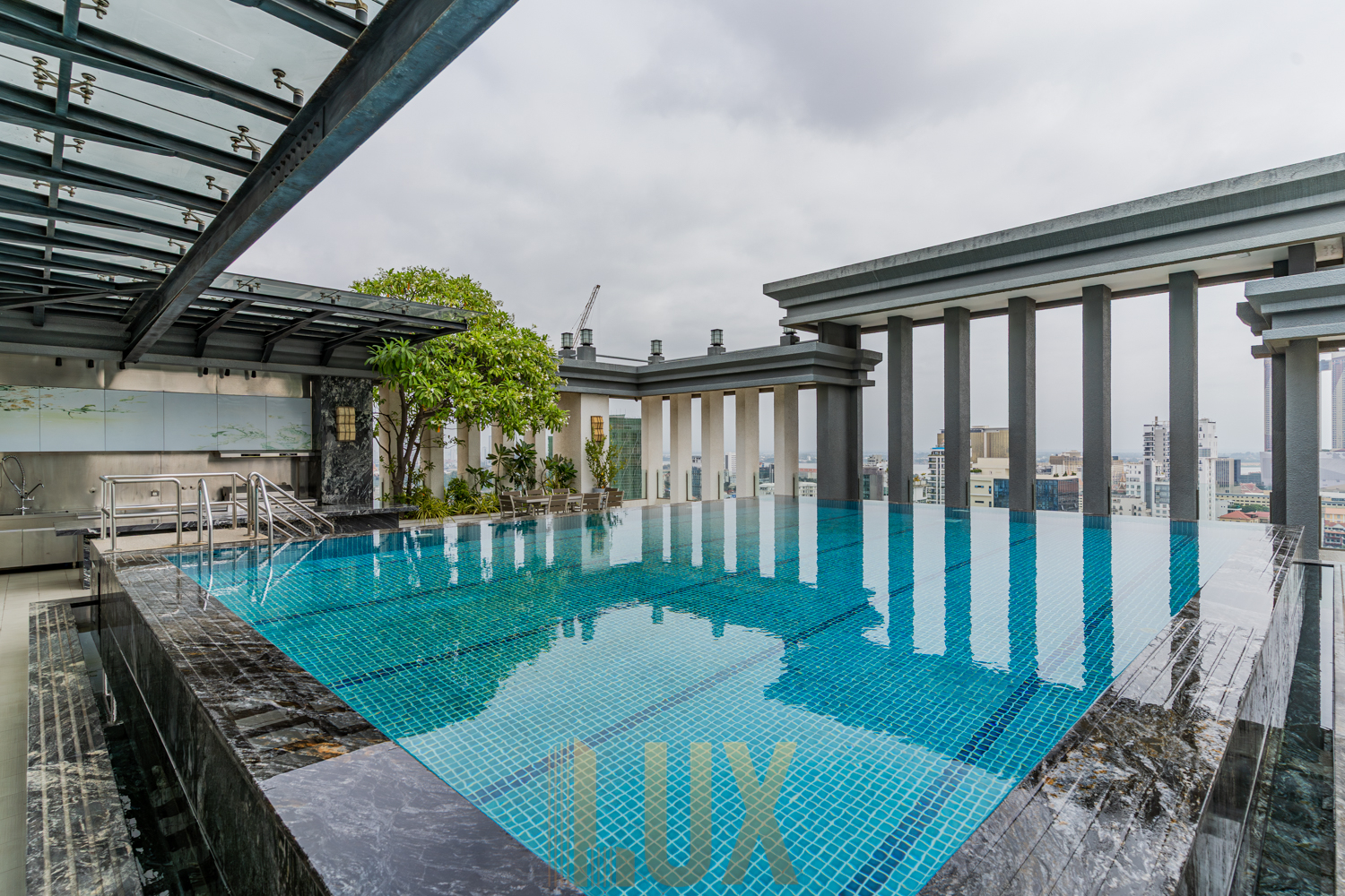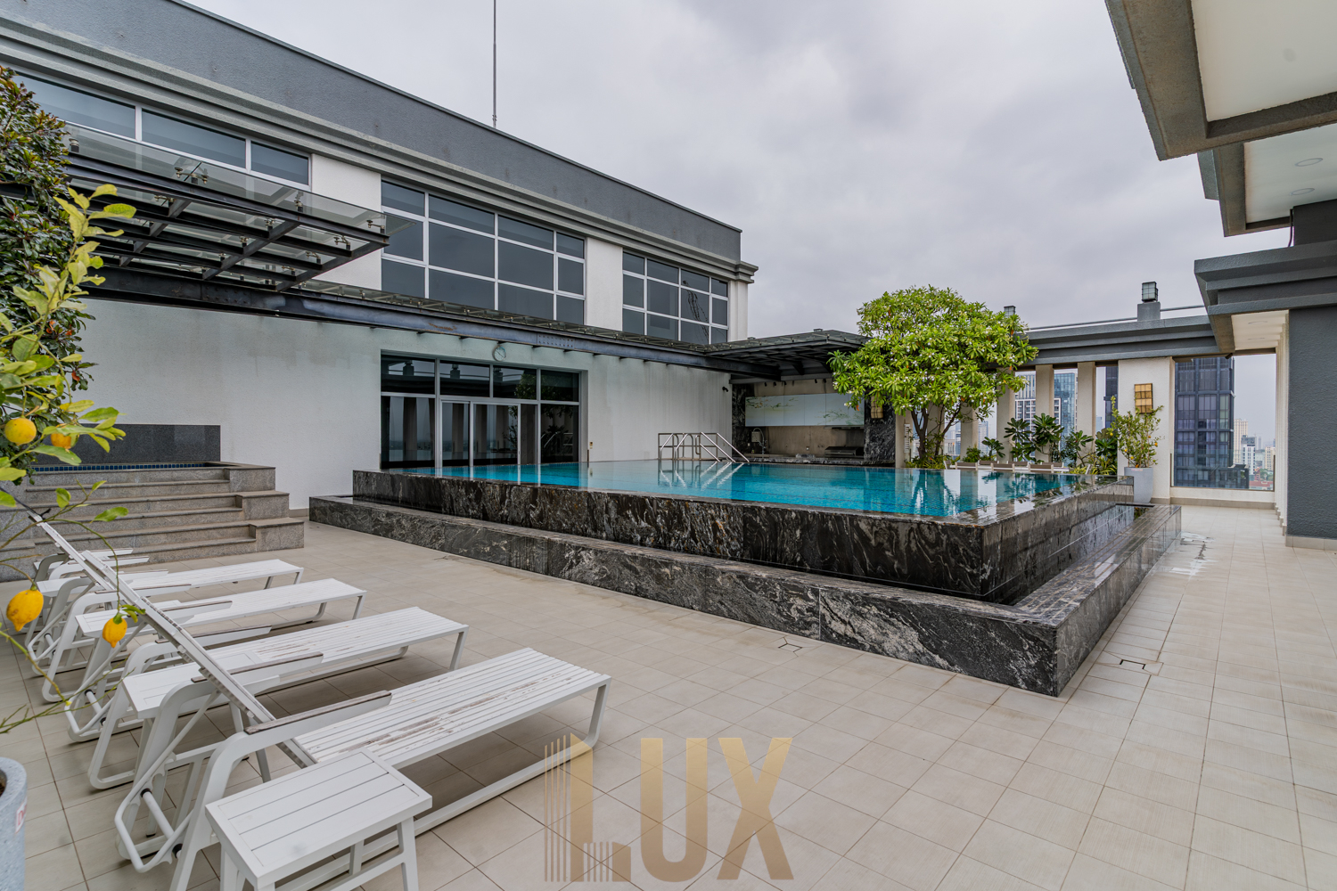 Residents enjoy access to premium shared facilities, including an outdoor infinity pool and a fully equipped fitness center, adding to the convenience of serviced living in a central location.