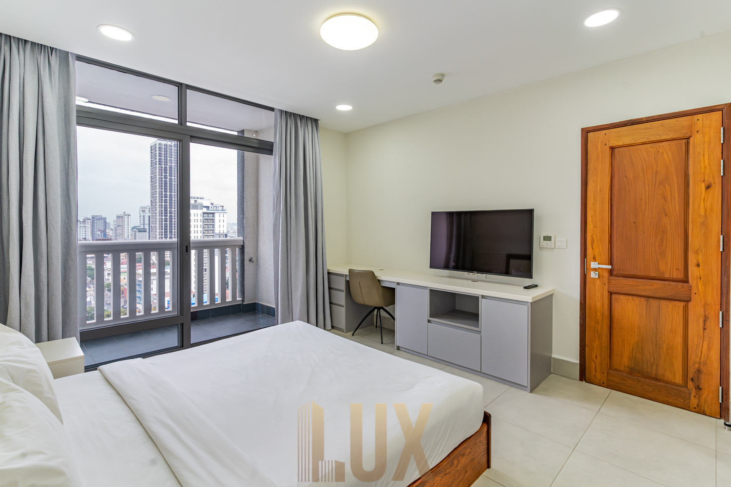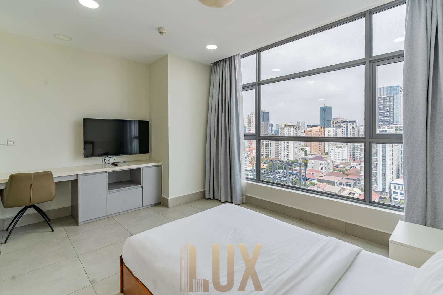Located on the 14th floor in BKK1, this spacious serviced apartment offers a well-balanced layout, modern finishes, and elevated city views in one of Phnom Penh’s most established residential districts.