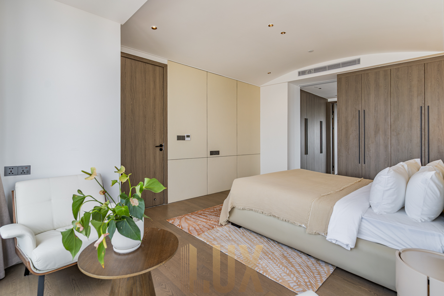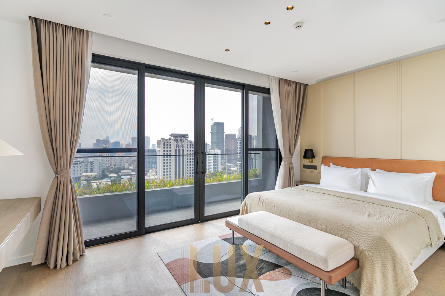 All three (3) bedrooms are well-sized and thoughtfully laid out, each with its own ensuite bathroom. The four (4) bathrooms are finished in neutral tones with modern fixtures, offering both comfort and privacy. The master bathroom stands out with a soaking tub positioned beside full-height windows, overlooking Phnom Penh’s skyline.