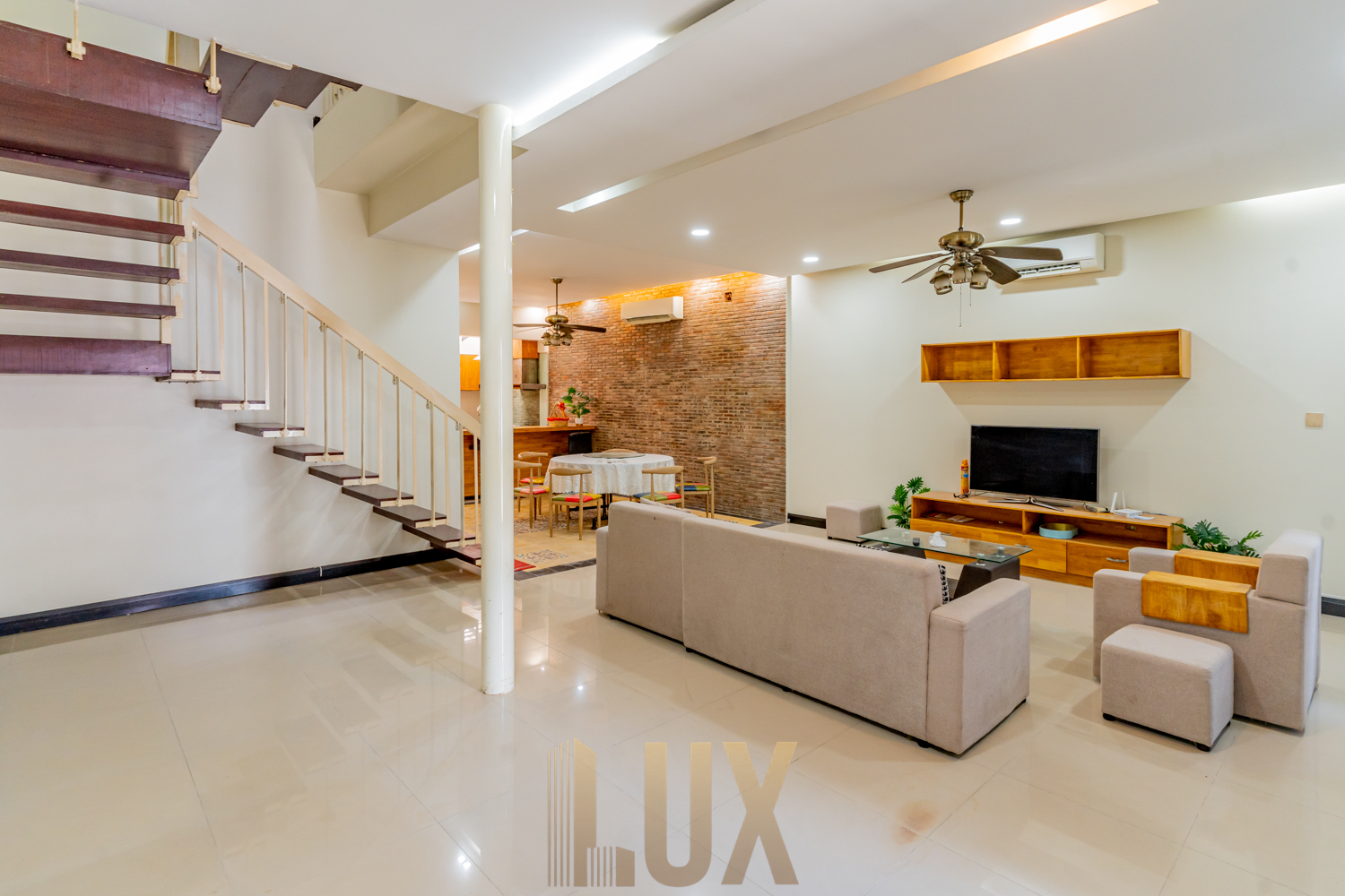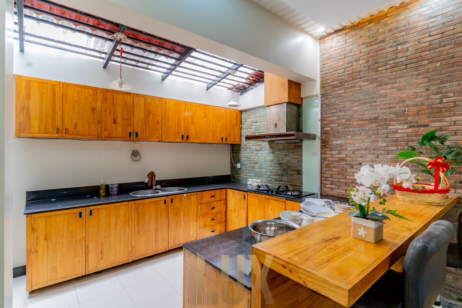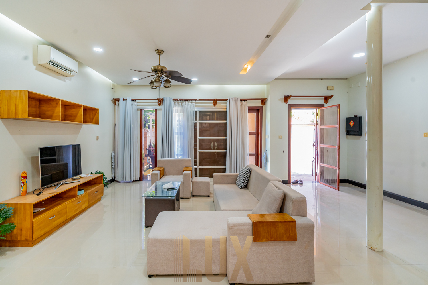 Here’s a chance to live in this gorgeous villa in Bassac Garden City, a 252 sqm. property that comes with a security gate, paved driveway, incorporated greenery, and even a mini fishpond! It is now available for rent semi furnished, inclusive of major appliances like the refrigerator, two flatscreen TVs, and a laundry machine.