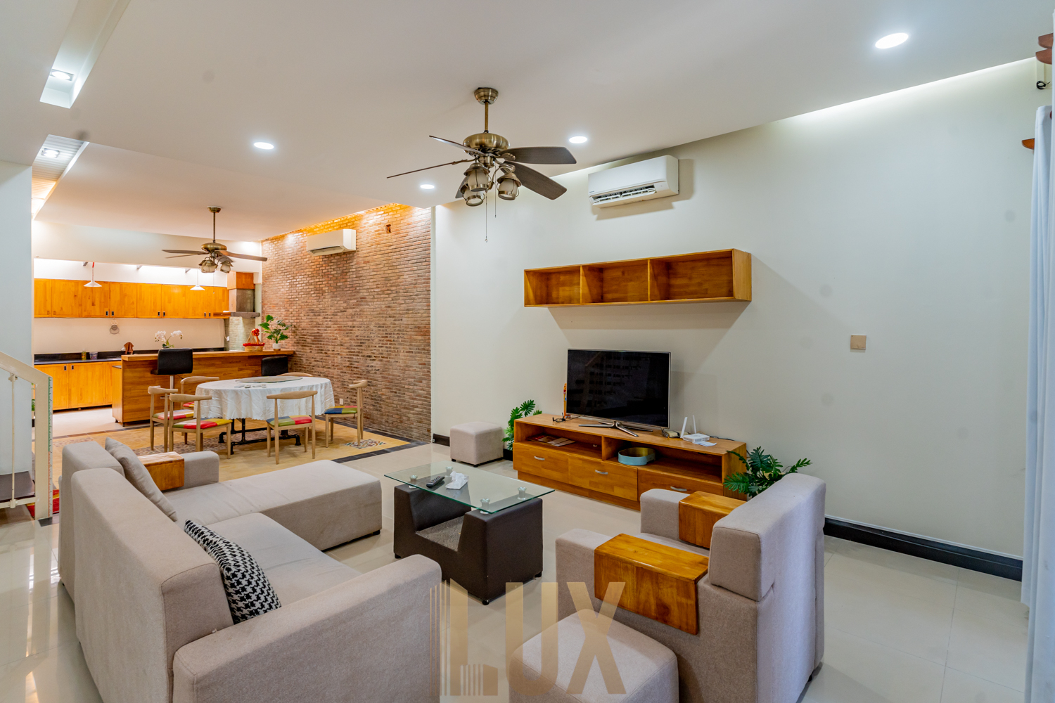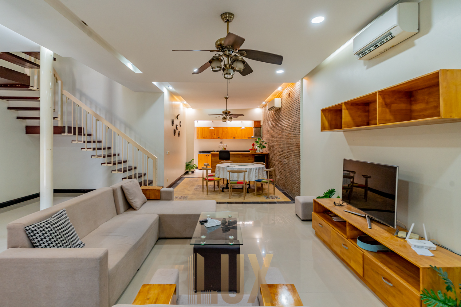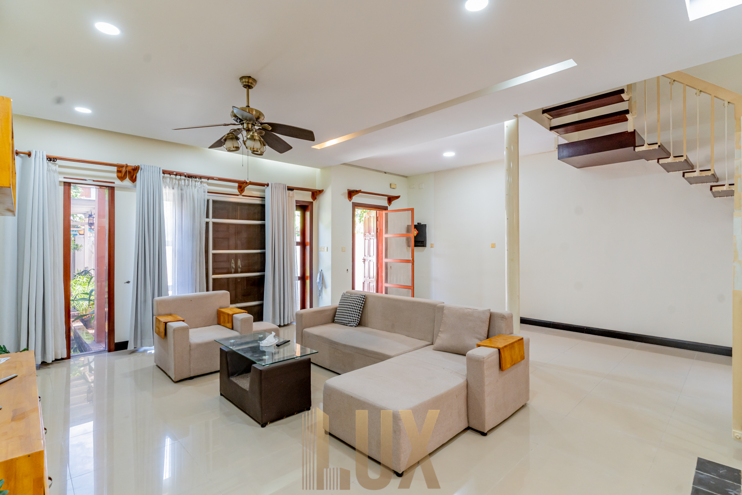 Here’s a chance to live in this gorgeous villa in Bassac Garden City, a 252 sqm. property that comes with a security gate, paved driveway, incorporated greenery, and even a mini fishpond! It is now available for rent semi furnished, inclusive of major appliances like the refrigerator, two flatscreen TVs, and a laundry machine.