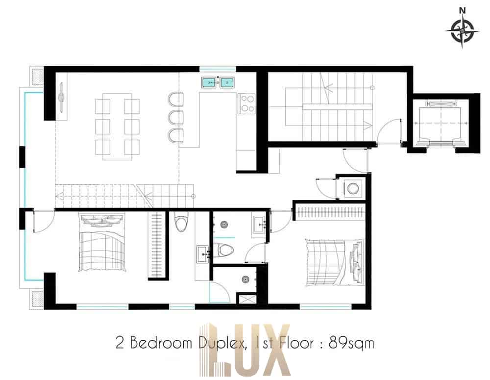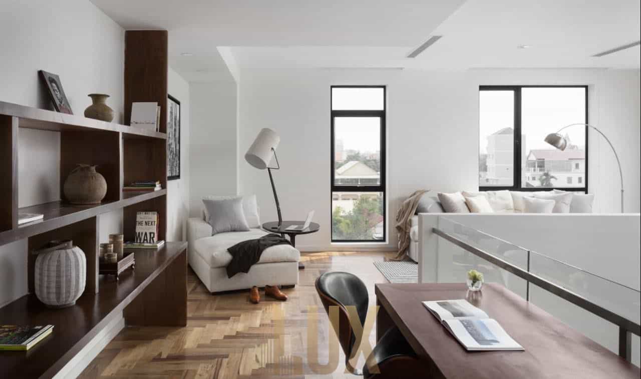 This ultra modern duplex apartment with huge study area is available for rent immediately. The building is a boutique condo development with only 13 apartments ,offering a more quieter and private option than the bigger condo developments.it has a pool, gym and a rooftop bbq area. It is very conveniently situated only a few hundred meters walk from Aeon mall 1, Chipmong mall, Odom park and Bassac lane.