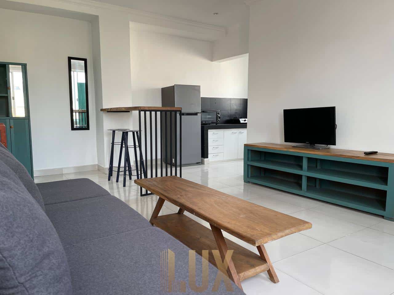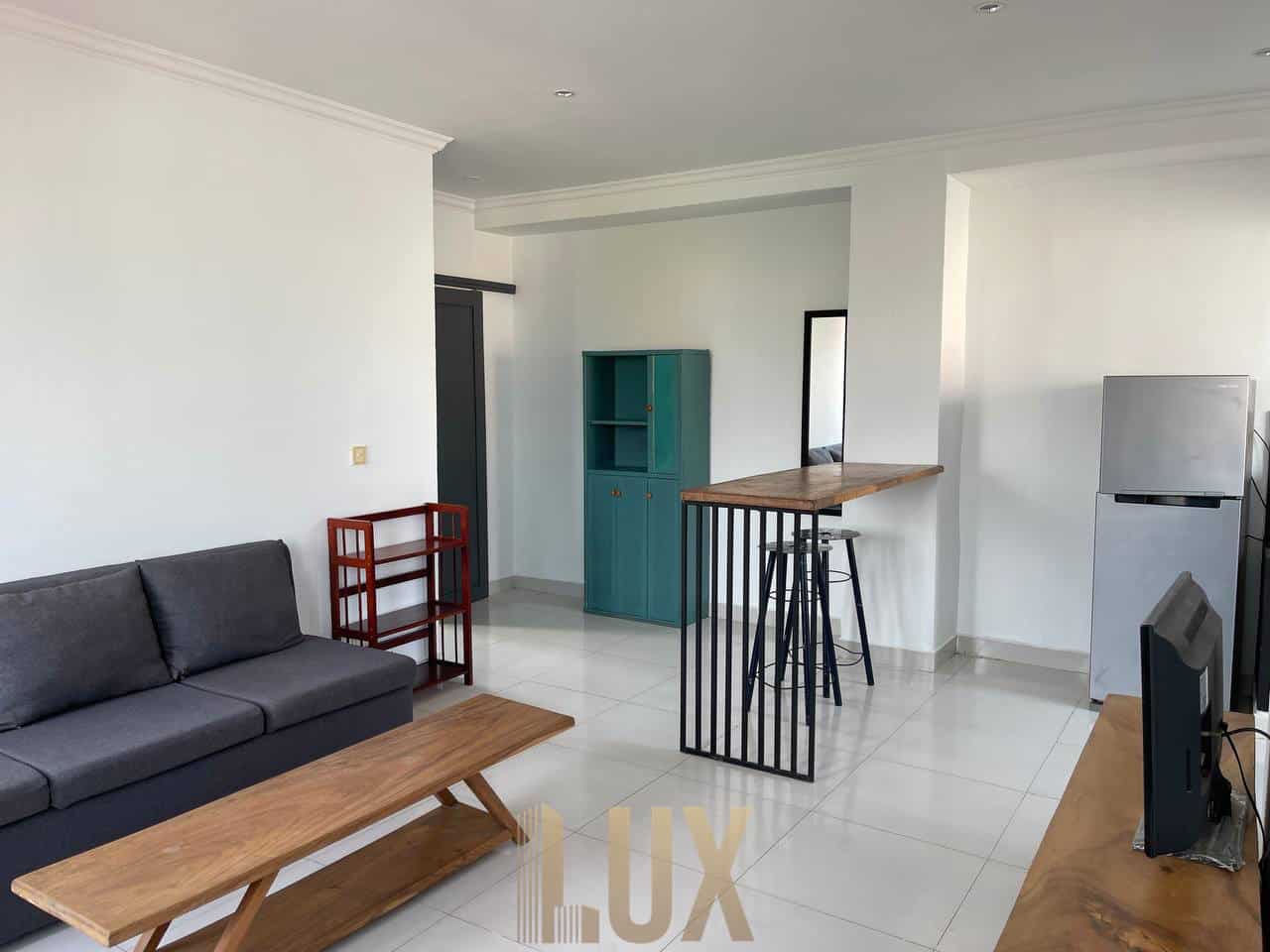 This lovely modern style apartment with all furniture included in an A1 location (street 178 Daun Penh Area) with lots of activities and social events nearby. The apartment is well organized and the space feels a lot bigger than 60 square meters due to the clever layout of the breakfast bar and living room with lots of natural light.