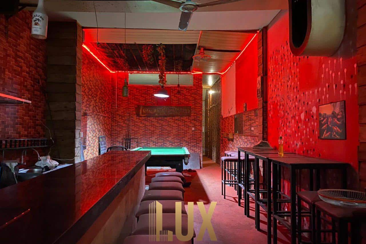 This bar is located in Phsar Kondal (Daun Penh district), about a 3 minute walk to the riverside. Lots of foot traffic and neighboring hotels in the tourist hub of Phnom Penh make this a great location for a bar business. It comes furnished with lights and tables and chairs.