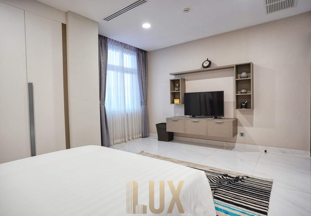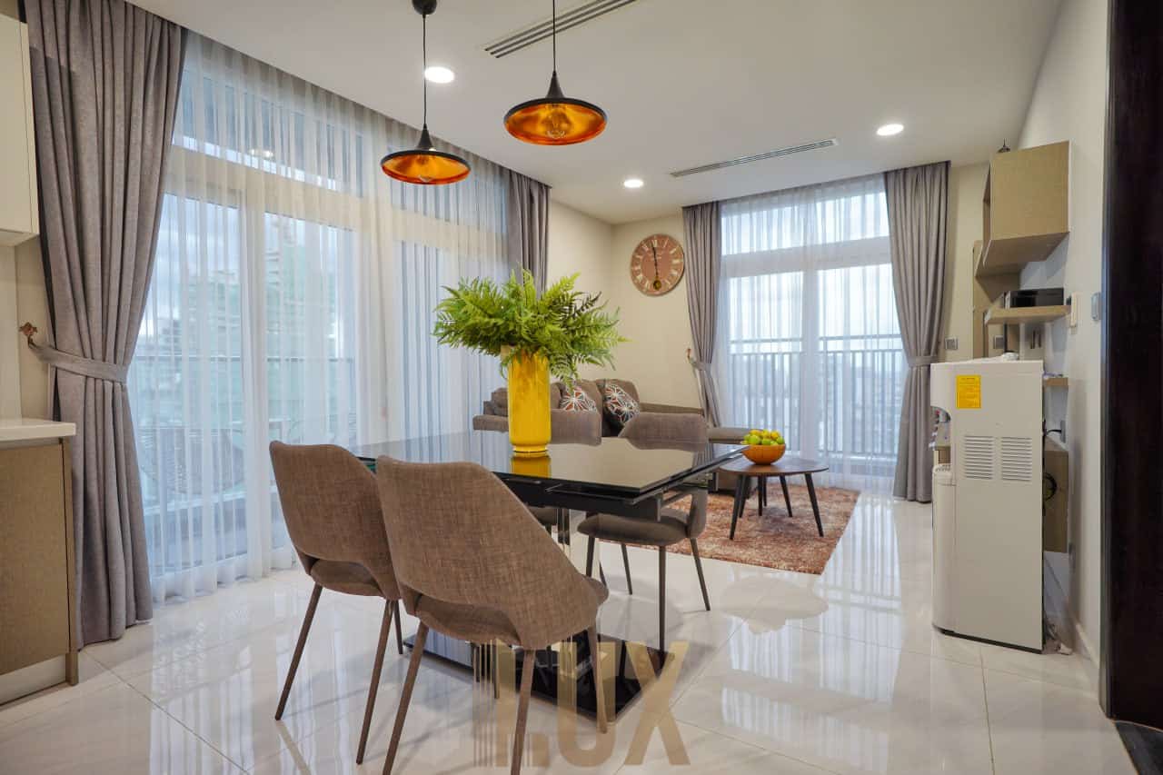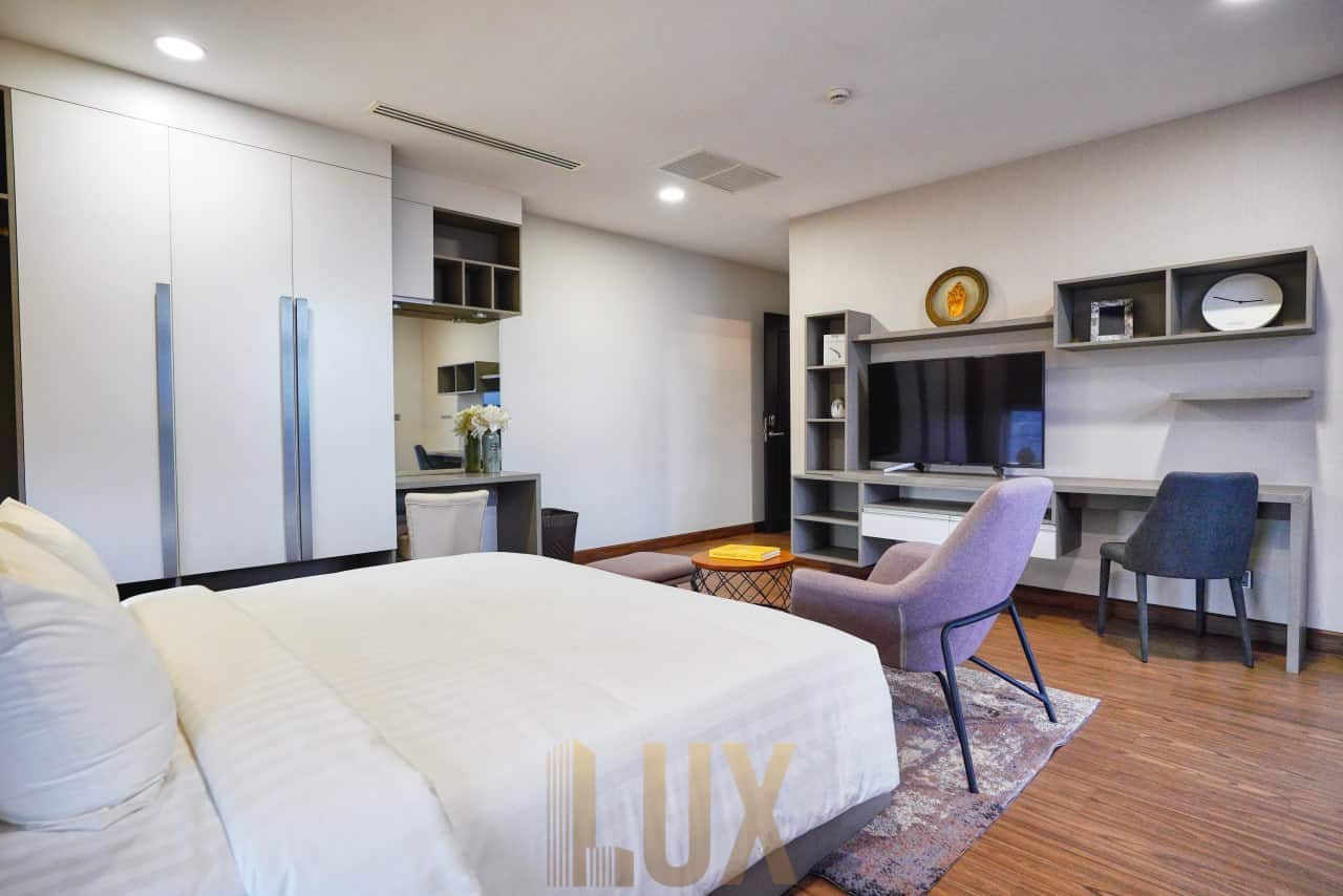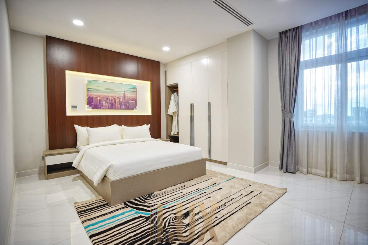 Experience luxury living at its finest in this exquisite 2-bedroom serviced apartment located in the vibrant BKK2 district. Fully-furnished to the highest standards, this unit offers everything you need for a comfortable lifestyle, including AC units, hot water, a refrigerator, and a washing machine.