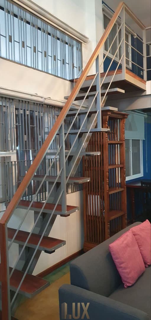 Spacious 1-Bedroom Apartment with Mezzanine and Balcony at The Loft in BKK3: This spacious 1-bedroom apartment is located in the vibrant BKK3 district at The Loft building. The apartment is fully furnished with modern amenities and appliances, making it perfect for those who want to live in comfort. The apartment features a spacious living room with comfortable seating arrangements, a flat-screen TV, and large windows that let in plenty of natural light. The bedroom is cozy and comfortable, with a queen-sized bed and ample closet space. The mezzanine level provides additional space for relaxation or work. The balcony offers stunning views of the city.