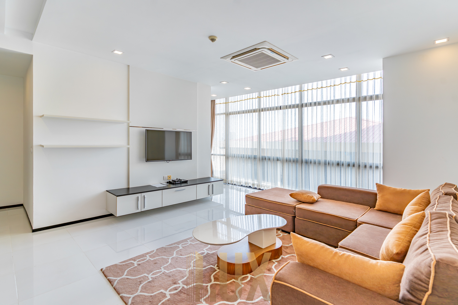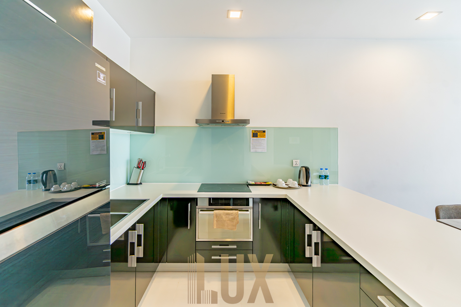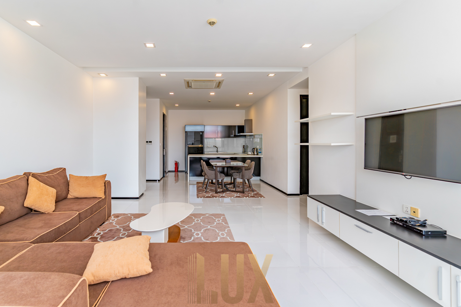 Designed with free-flowing living spaces and highly-detailed interior finish, this apartment features two large bedrooms, walk-in closet, two modern bathrooms (bathtub), a massive, open-plan living room and dining area, a fully-equipped kitchen, and big balcony space.