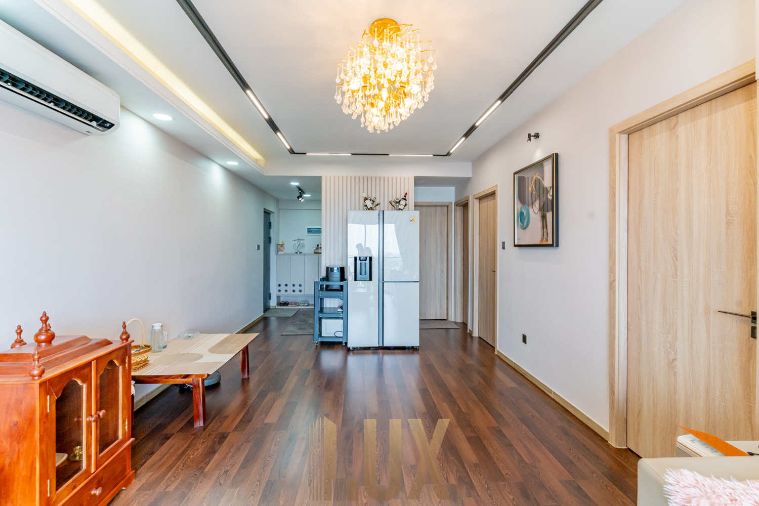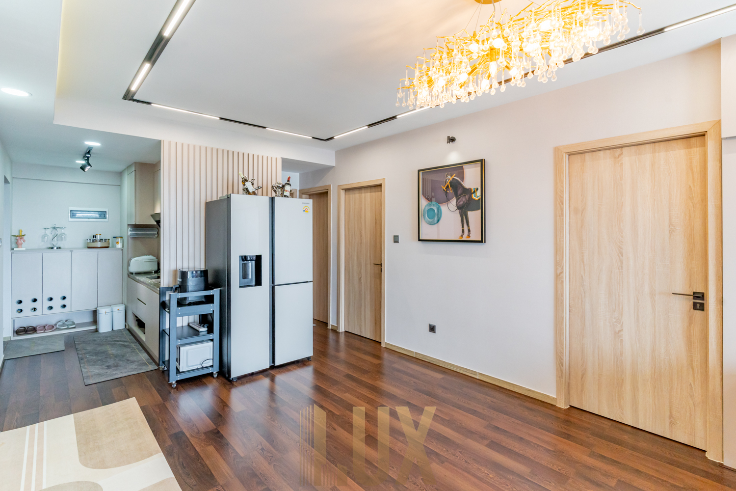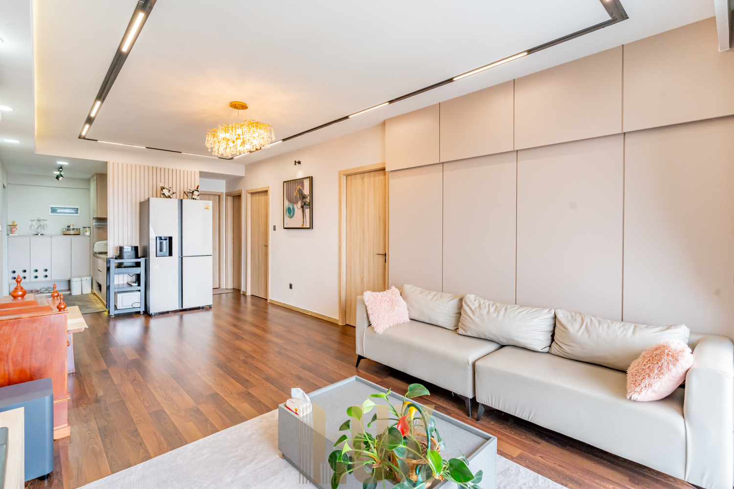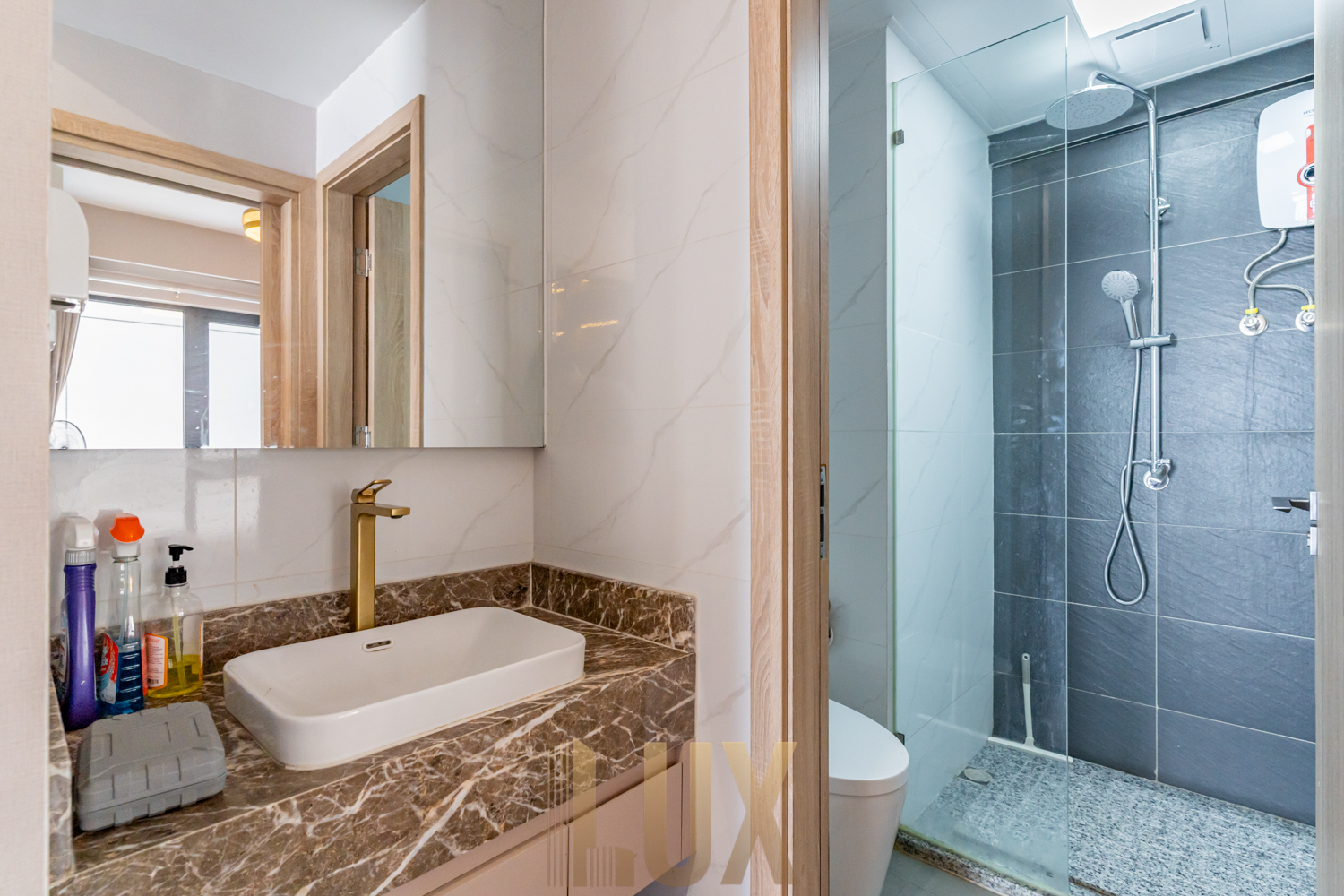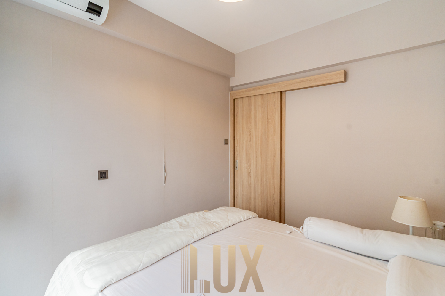 This unit comes with all you’d need for a comfortable urban lifestyle: a built-in kitchen utility counter with an exhaust, cooker, and oven, plus a large refrigerator; a cozy armless sofa; plenty of integrated storage and shelving; a flatscreen TV, and a large bed situated by the balcony. The latter ensures a steady flow of sunlight, illuminating the interior and creating an energizing atmosphere. The bathroom is also well-equipped with a large sink counter and a hot/cold walk-in shower. Moreover, the unit boasts a breathtaking view of the Mekong River. With such a serene landscape and in-building wellness amenities within reach, this would surely be the ideal abode for enjoying a balanced lifestyle.