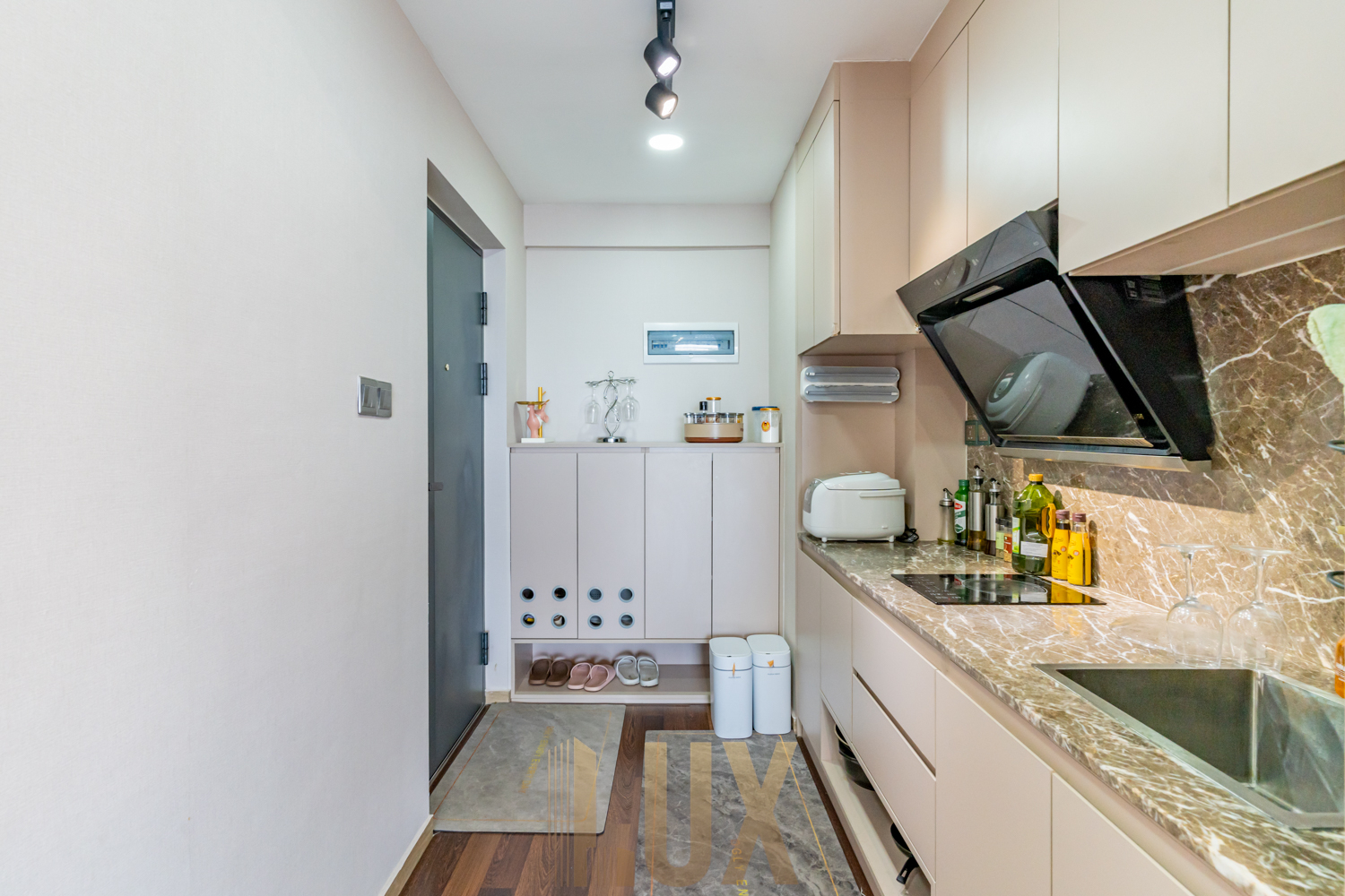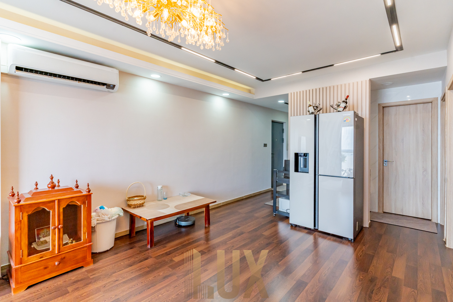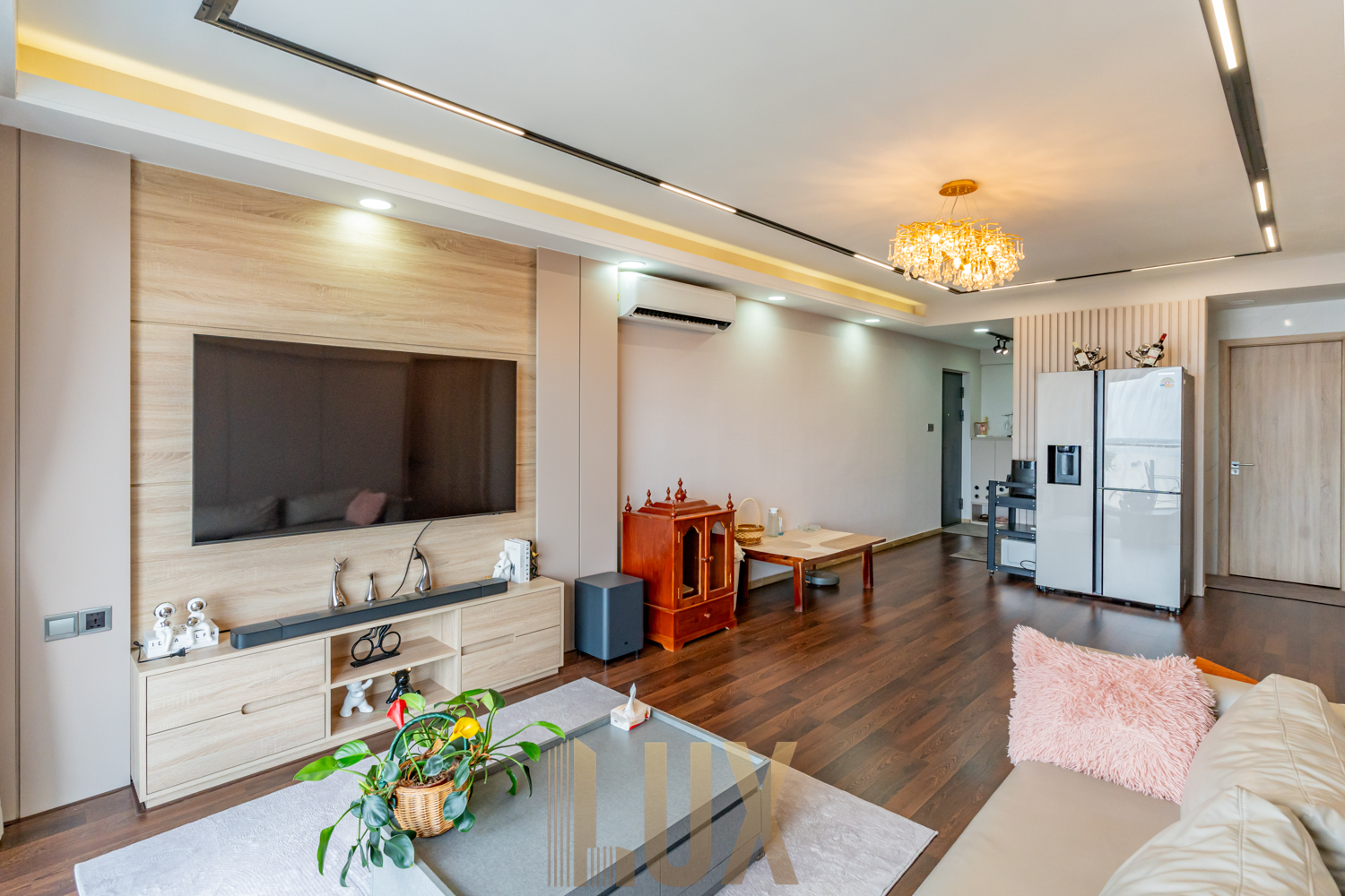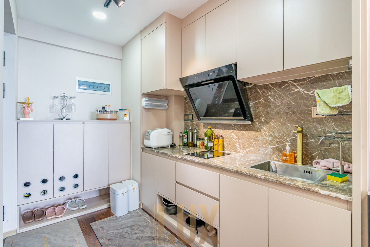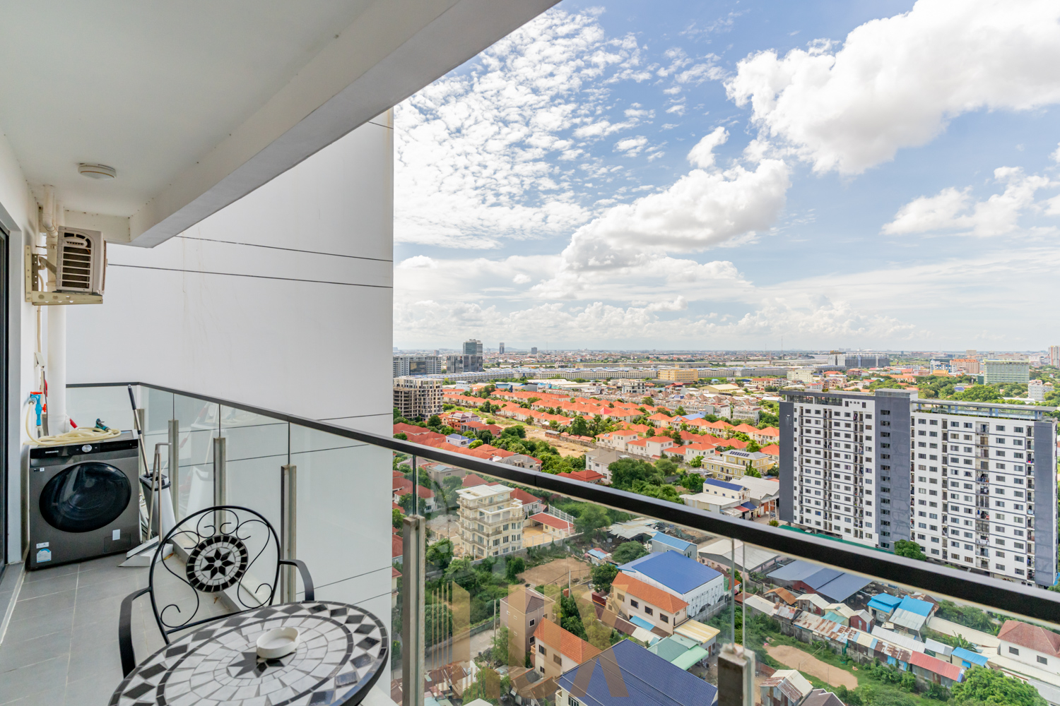 This unit comes with all you’d need for a comfortable urban lifestyle: a built-in kitchen utility counter with an exhaust, cooker, and oven, plus a large refrigerator; a cozy armless sofa; plenty of integrated storage and shelving; a flatscreen TV, and a large bed situated by the balcony. The latter ensures a steady flow of sunlight, illuminating the interior and creating an energizing atmosphere. The bathroom is also well-equipped with a large sink counter and a hot/cold walk-in shower. Moreover, the unit boasts a breathtaking view of the Mekong River. With such a serene landscape and in-building wellness amenities within reach, this would surely be the ideal abode for enjoying a balanced lifestyle.