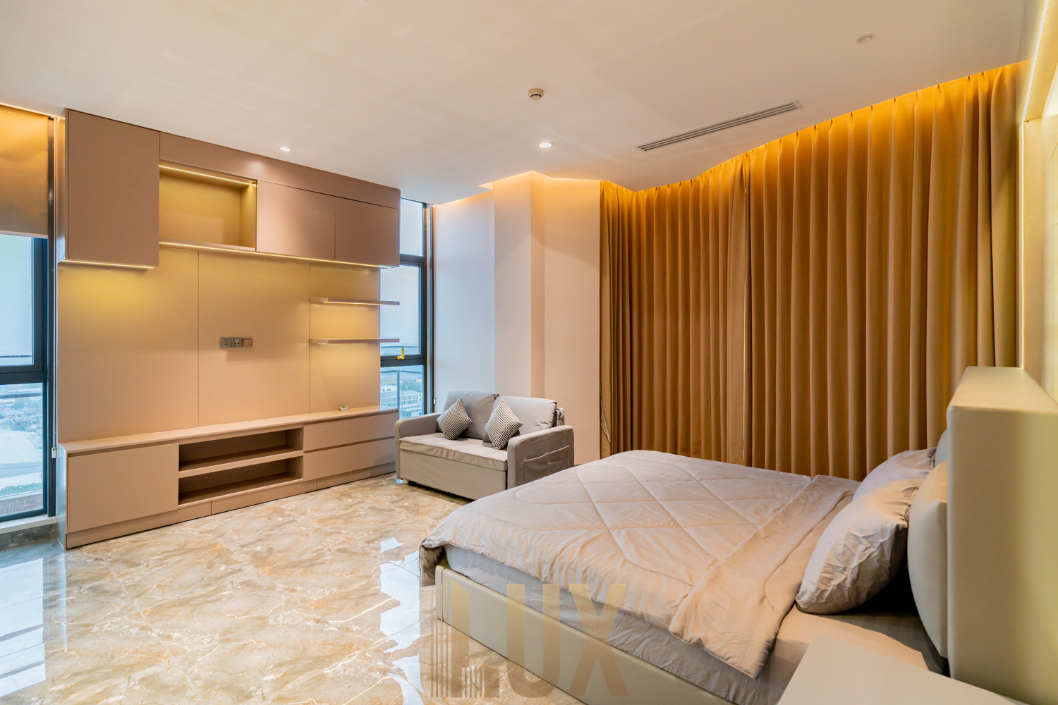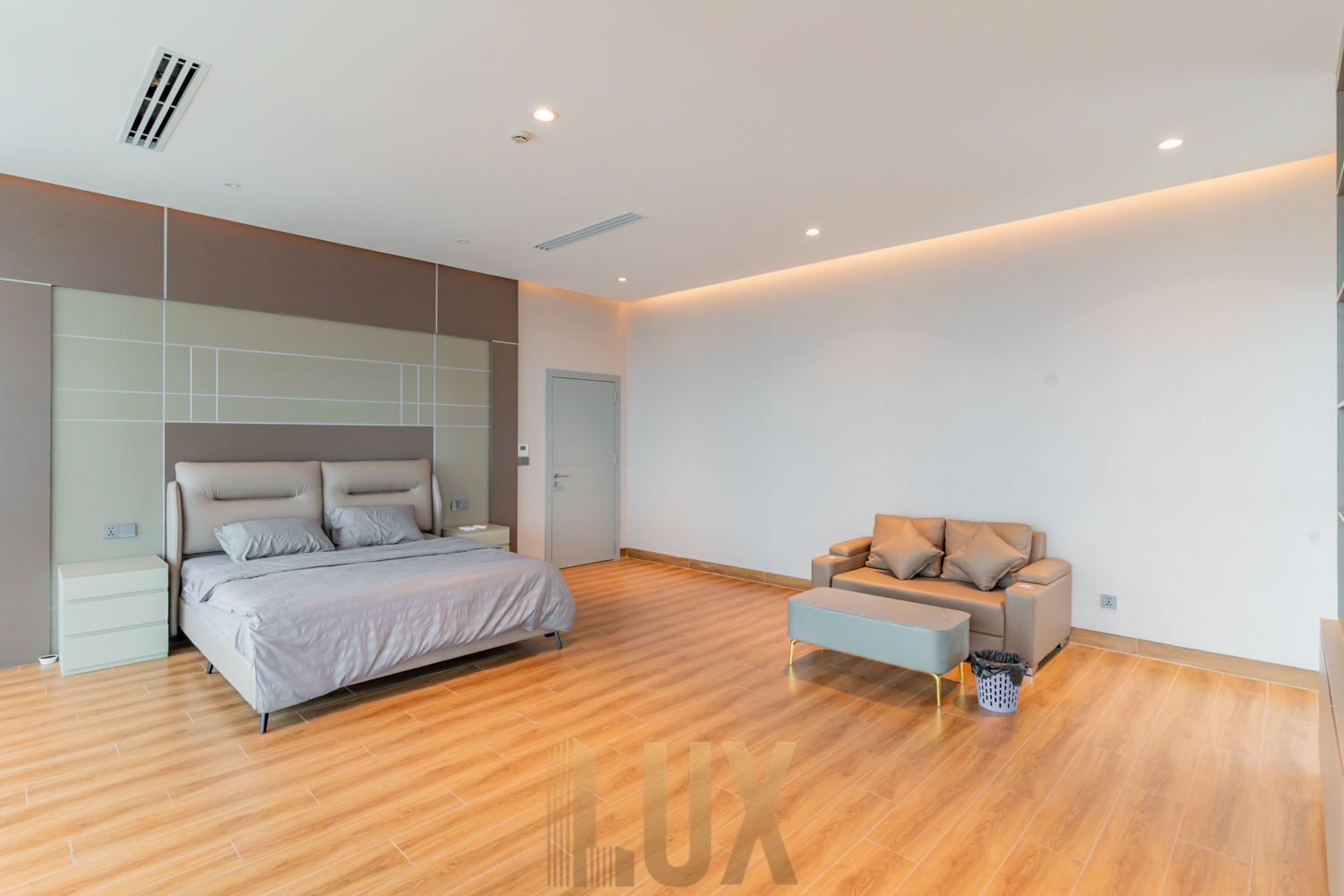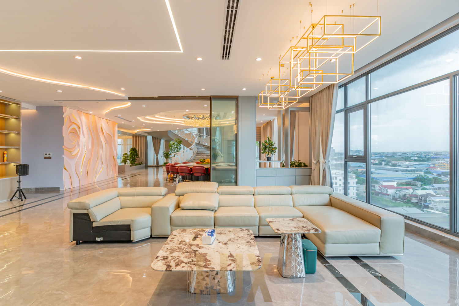 Discover 1,500 sqm of modern luxury in this fully furnished 6-bedroom, 8-bathroom duplex penthouse, one of Phnom Penh’s largest and most exclusive rental listings.