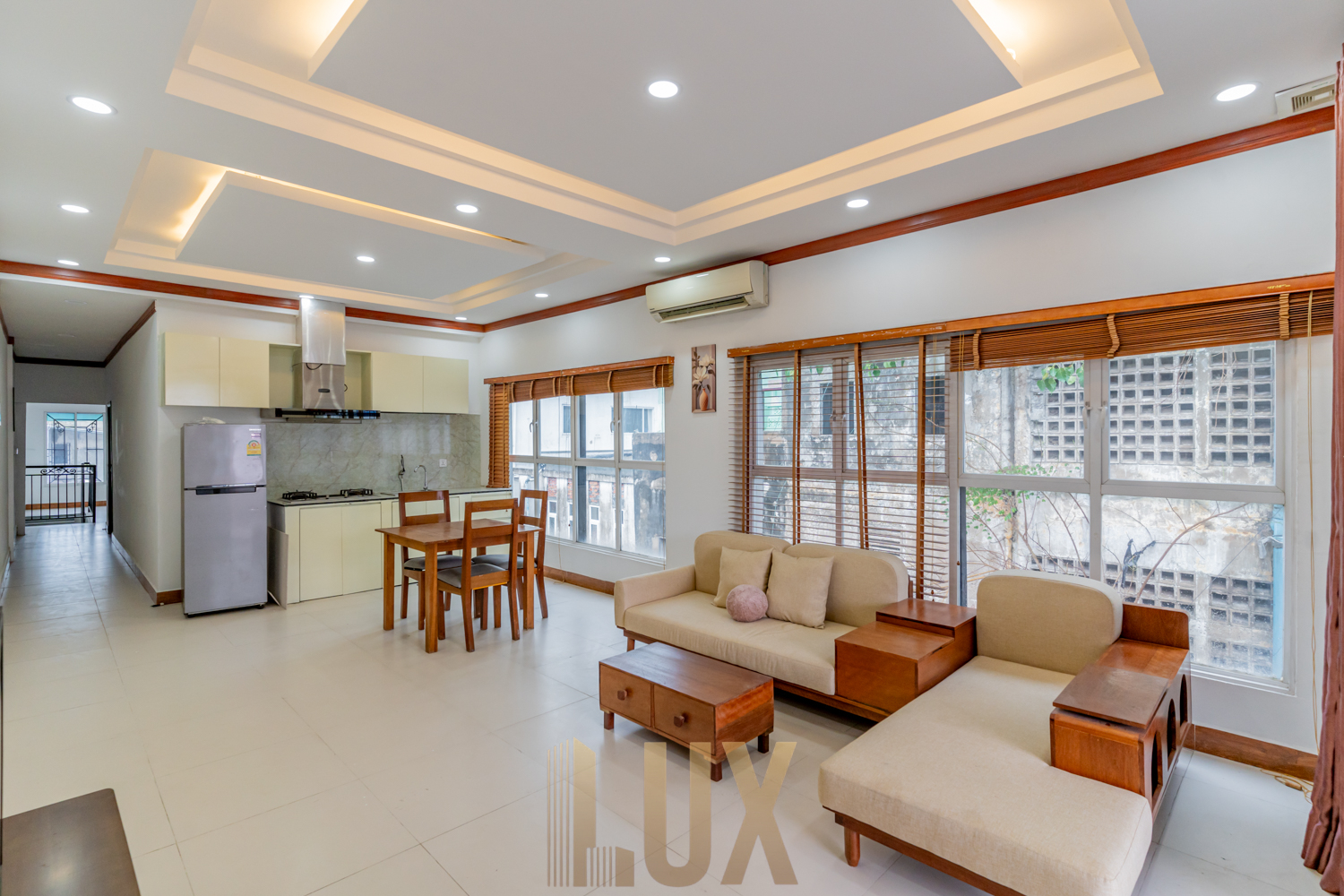This fully furnished and newly renovated apartment is now available for rent, inviting you to enjoy its refreshing atmosphere, wide spaces, and prime location for making the most of Phnom Penh living. It’s the ideal abode for the household with an active social life, having a bright and airy living area and a separate hall for the kitchen and dining table. Bedrooms are likewise spacious and fitted with modern comforts to provide quality rest as well as a conducive space for focusing on work or any personal projects.