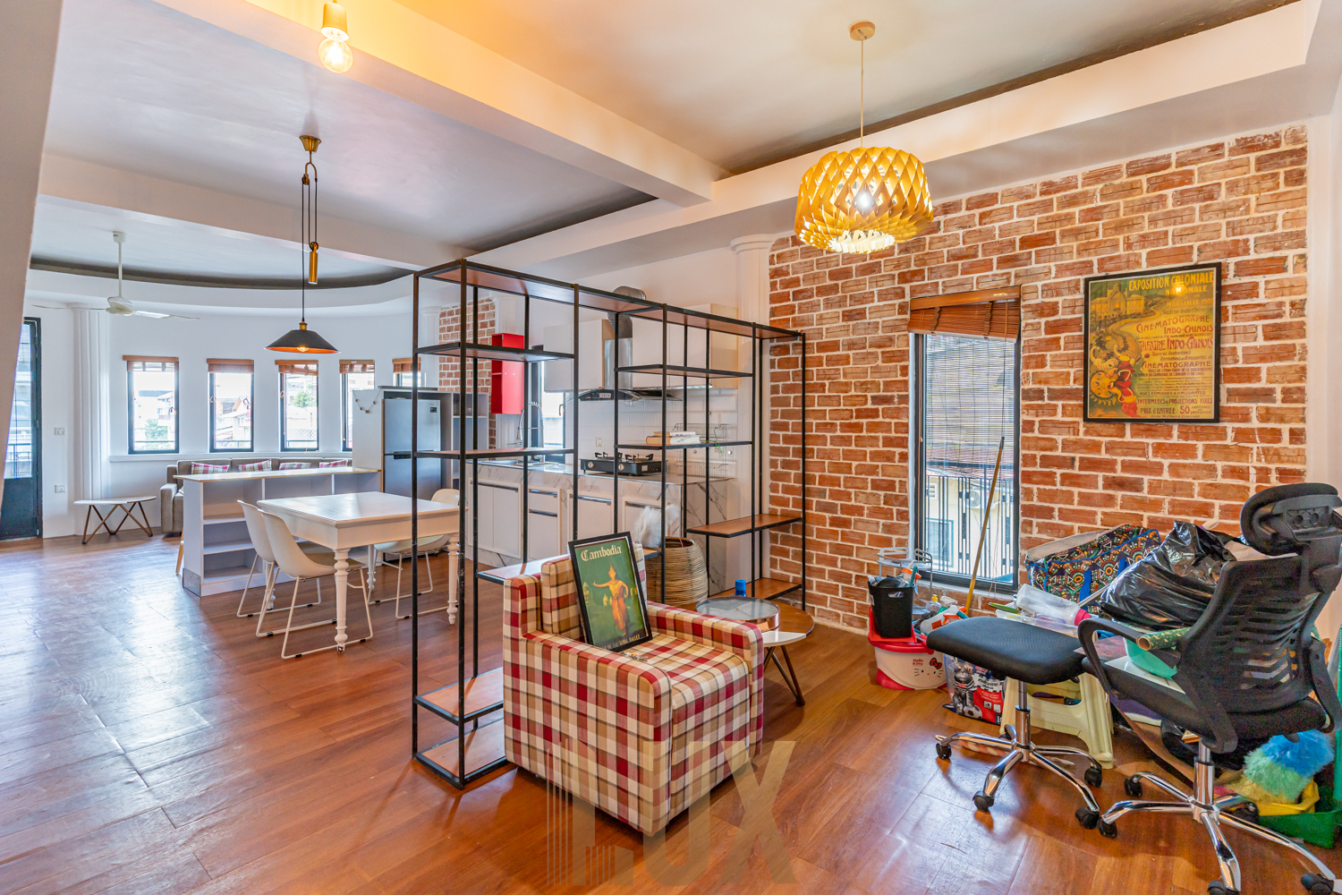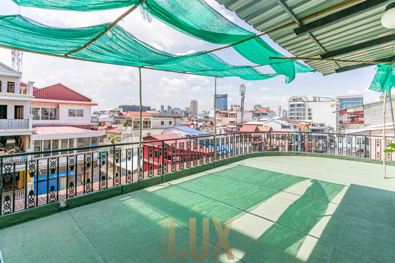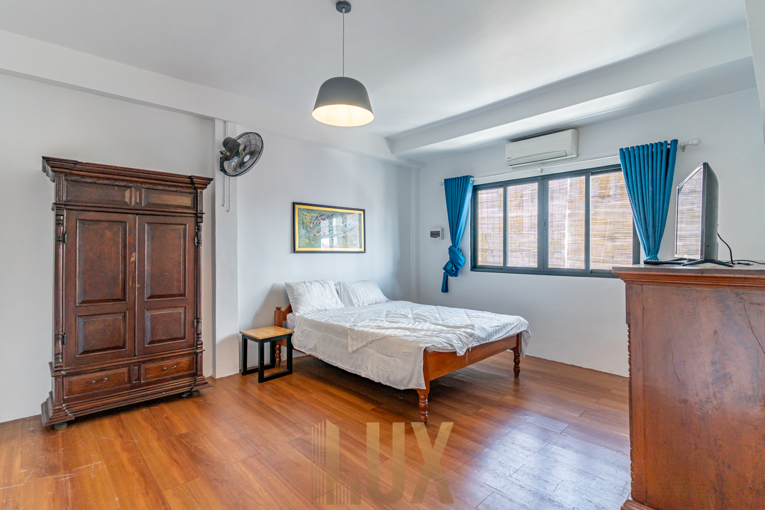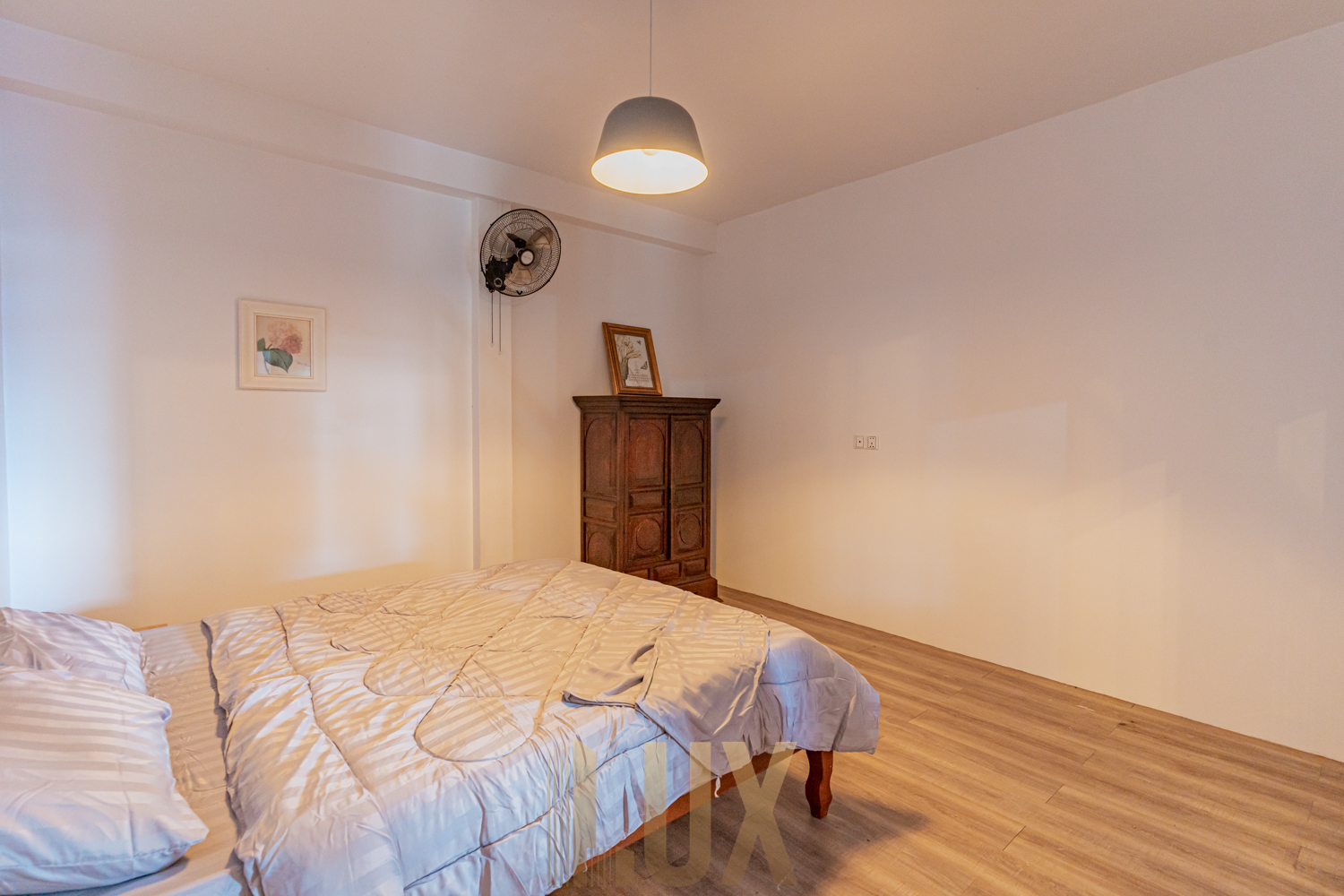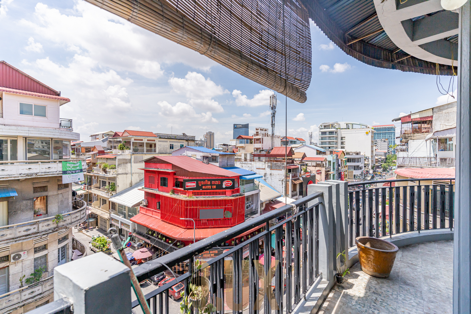 This property is a flat house situated in the busting city of Daun Penh, Phnom Penh. It is composed of 3 bedroom and 2 bathrooms found on the 4th floor of the apartment building. Set in heights, it features a wide balcony with a scenic view of the cityscape. It is designed in a modern style with complete furnishings of TV, sofa, beds, air-conditioning units, chairs, desks, and refrigerator. It is in the same vicinity as the Riverside with nearby convenient establishments including U Care Pharmacy, Kandal Market, Psha Chas, and other banks, bars, and restaurants.,