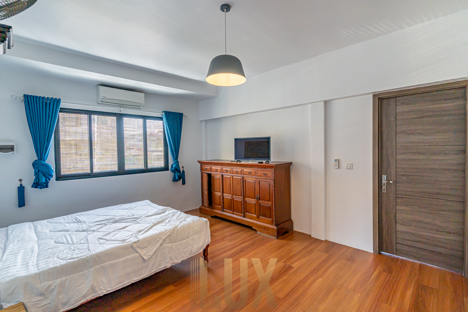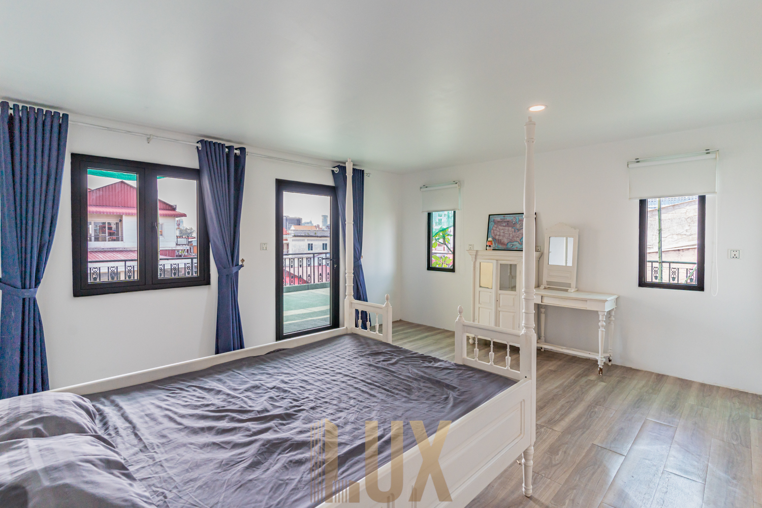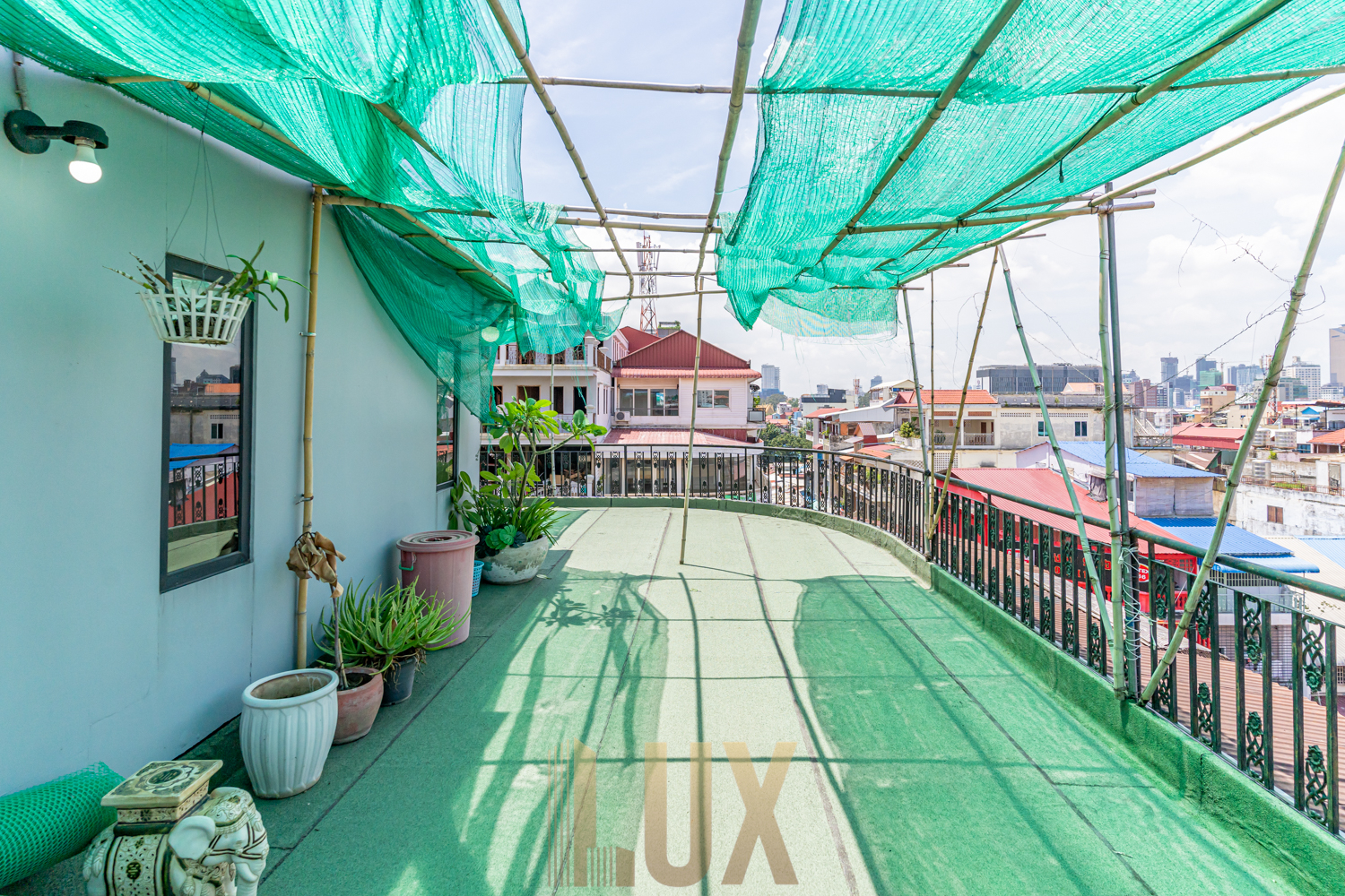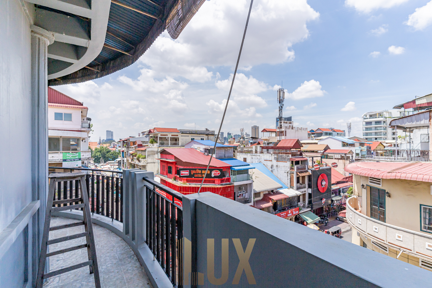 This property is a flat house situated in the busting city of Daun Penh, Phnom Penh. It is composed of 3 bedroom and 2 bathrooms found on the 4th floor of the apartment building. Set in heights, it features a wide balcony with a scenic view of the cityscape. It is designed in a modern style with complete furnishings of TV, sofa, beds, air-conditioning units, chairs, desks, and refrigerator. It is in the same vicinity as the Riverside with nearby convenient establishments including U Care Pharmacy, Kandal Market, Psha Chas, and other banks, bars, and restaurants.,