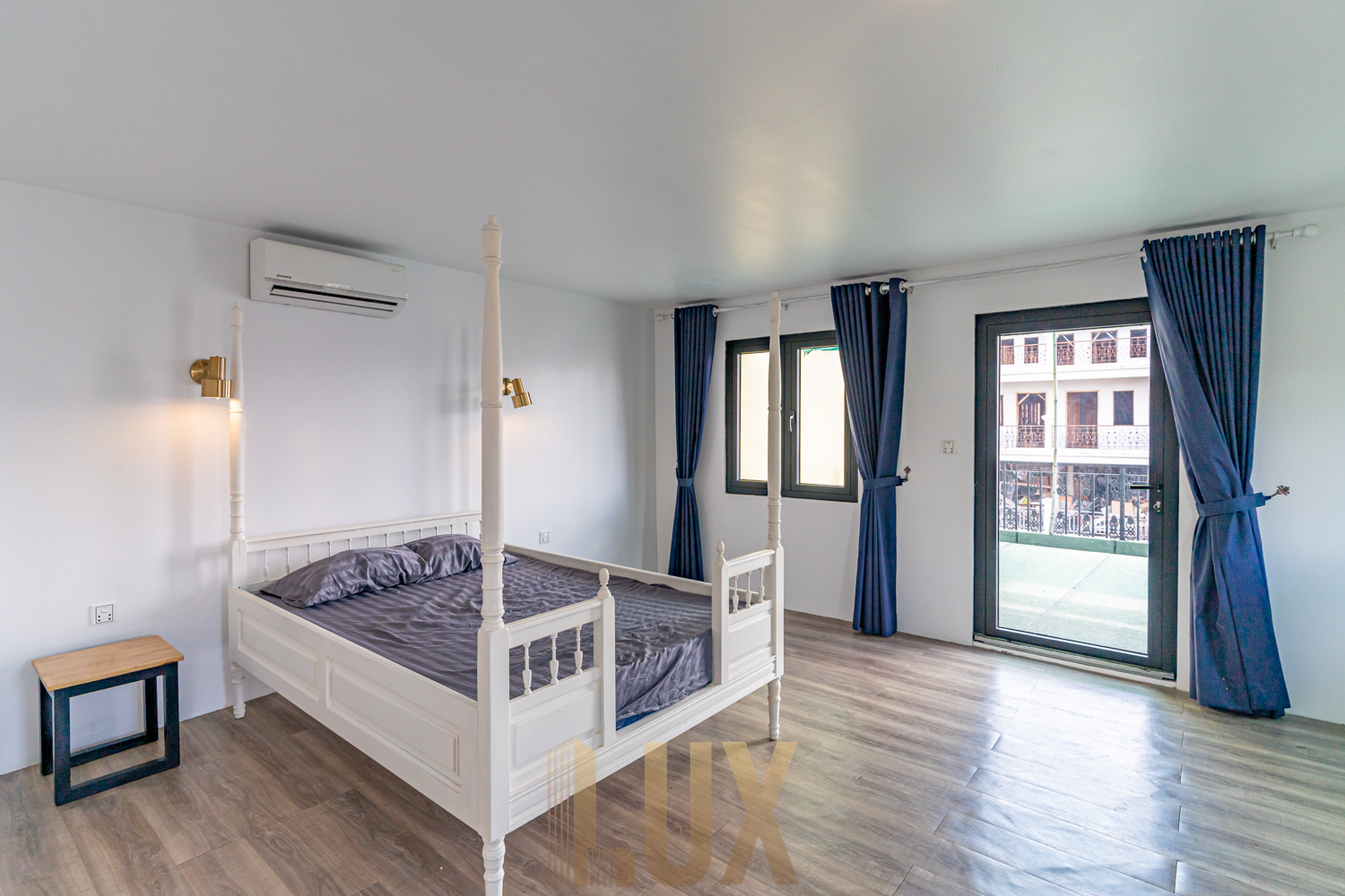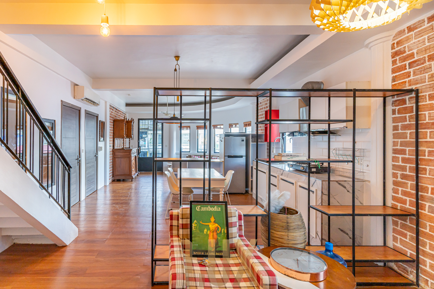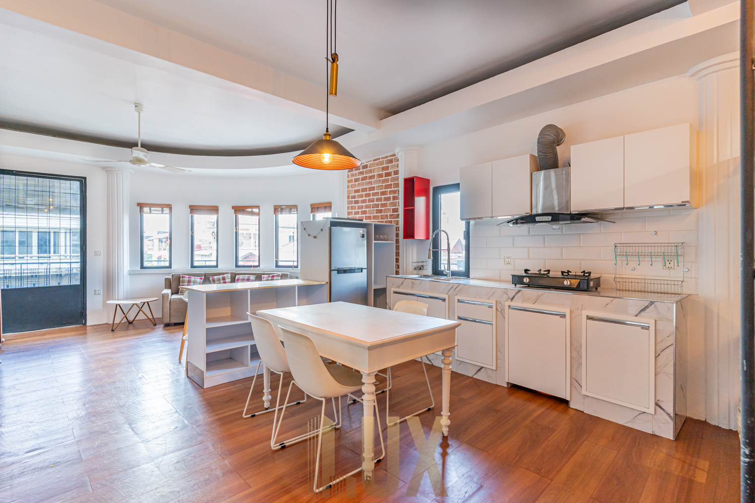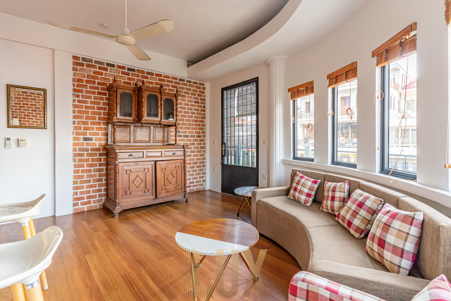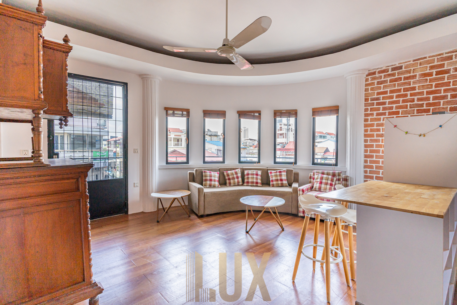 This property is a flat house situated in the busting city of Daun Penh, Phnom Penh. It is composed of 3 bedroom and 2 bathrooms found on the 4th floor of the apartment building. Set in heights, it features a wide balcony with a scenic view of the cityscape. It is designed in a modern style with complete furnishings of TV, sofa, beds, air-conditioning units, chairs, desks, and refrigerator. It is in the same vicinity as the Riverside with nearby convenient establishments including U Care Pharmacy, Kandal Market, Psha Chas, and other banks, bars, and restaurants.,