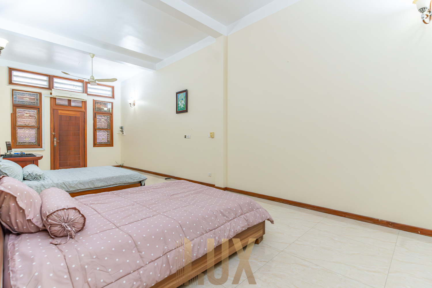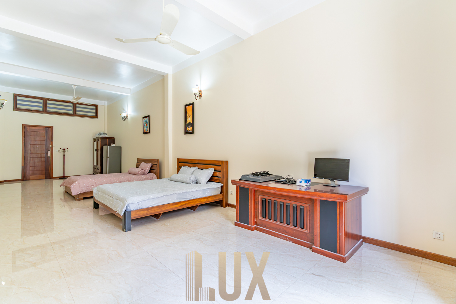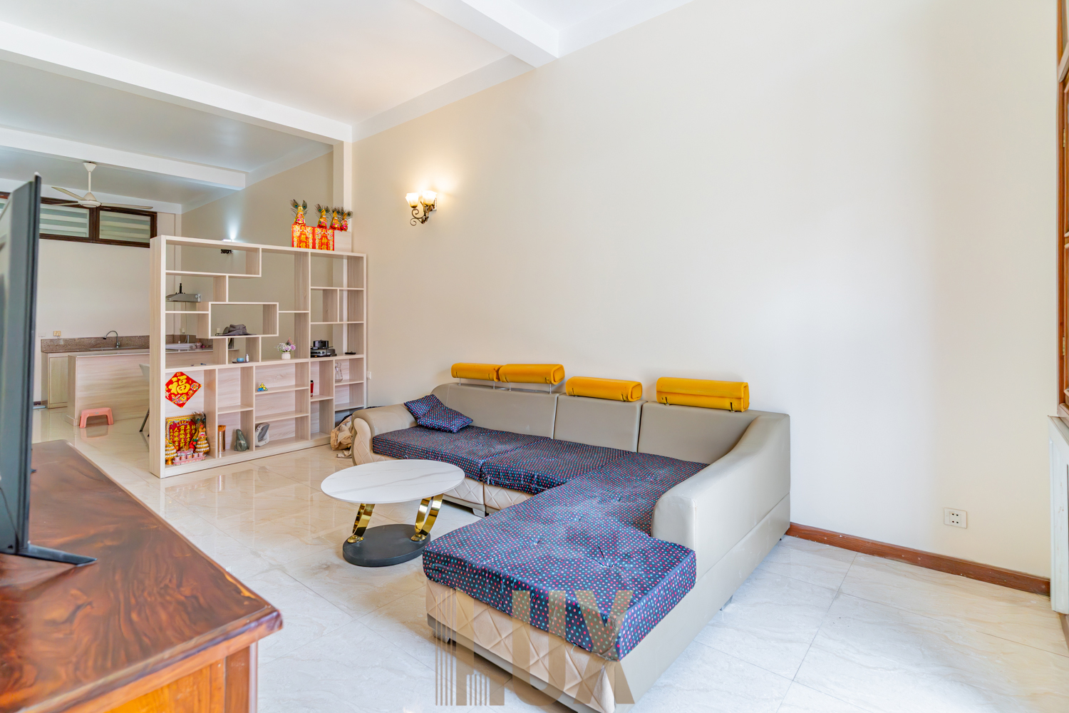This renovated apartment in Wat Phnom, Phnom Penh offers a spacious and versatile layout across three levels, making it ideal for those seeking both comfort and character in the city center.