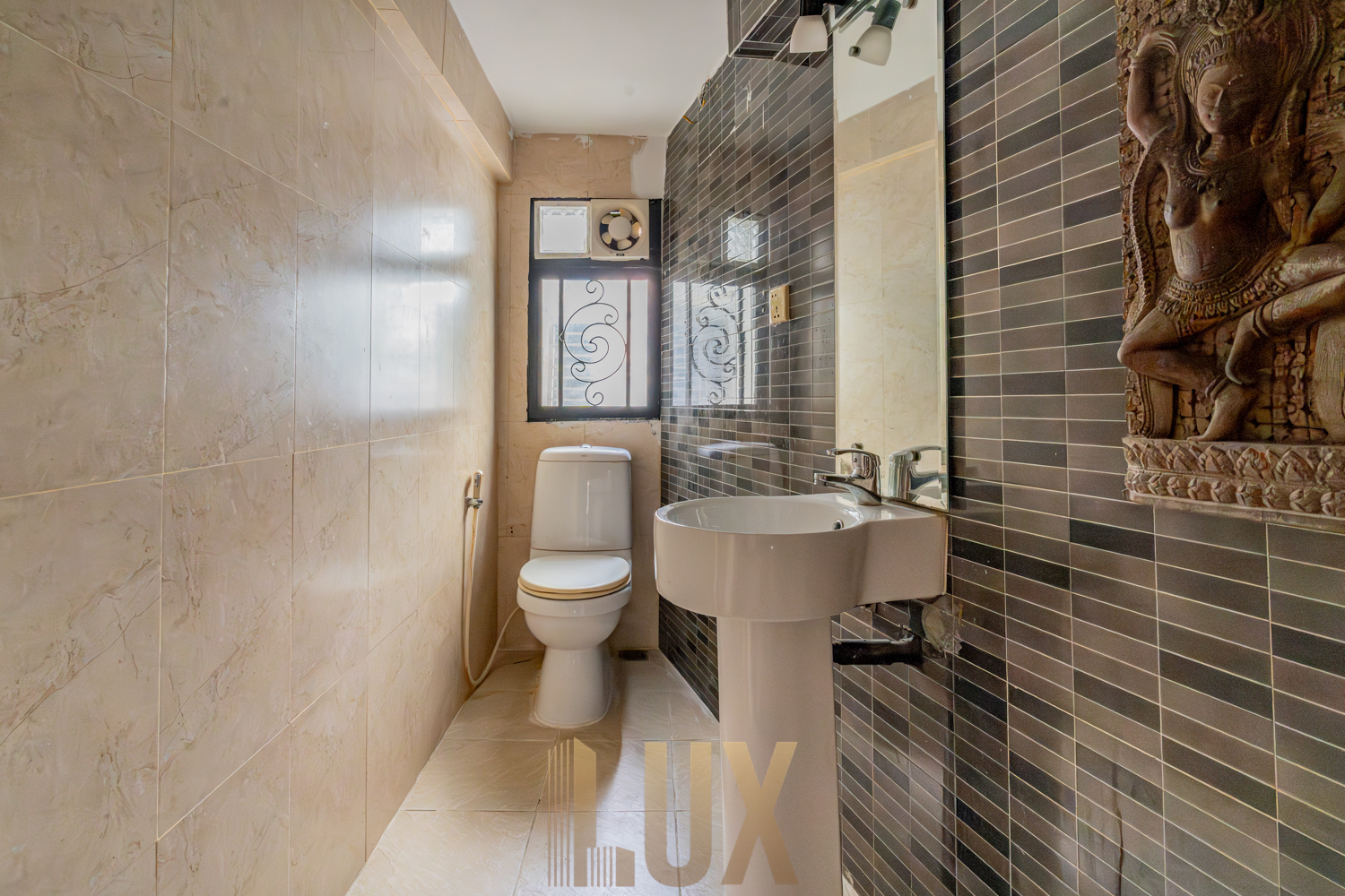 This fully furnished apartment offers the perfect blend of comfort and functionality in a chic duplex setting, allowing for a more open atmosphere. All essential furnishings and appliances, including a refrigerator, washing machine, and AC units, are provided to ensure a quick and easy move-in period into this gem, which also happens to be situated behind the Royal Palace so you’ll have plenty of scenic destinations within walking distance. From the main hall and kitchen to the secondary lounge on the mezzanine level, you’ll find plenty of room for unwinding together as a household, entertaining visitors, or even setting up multiple workstations if needed. Suitable for either a family or group of young professionals, this would surely be a rewarding place to live in Phnom Penh.