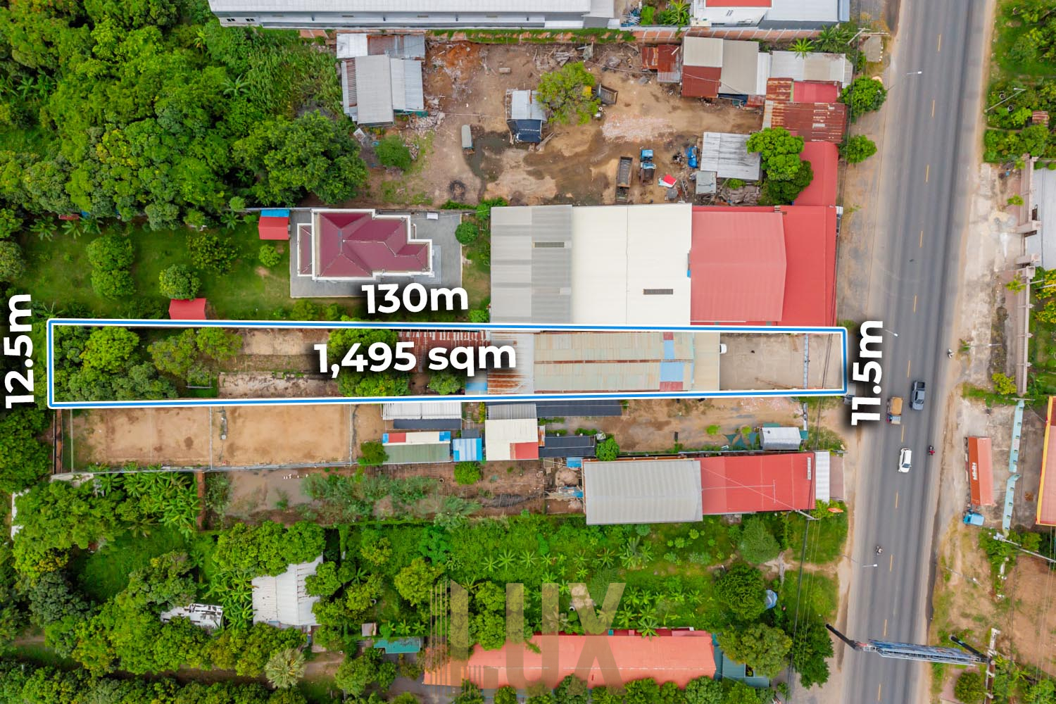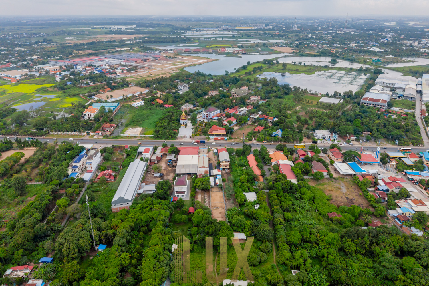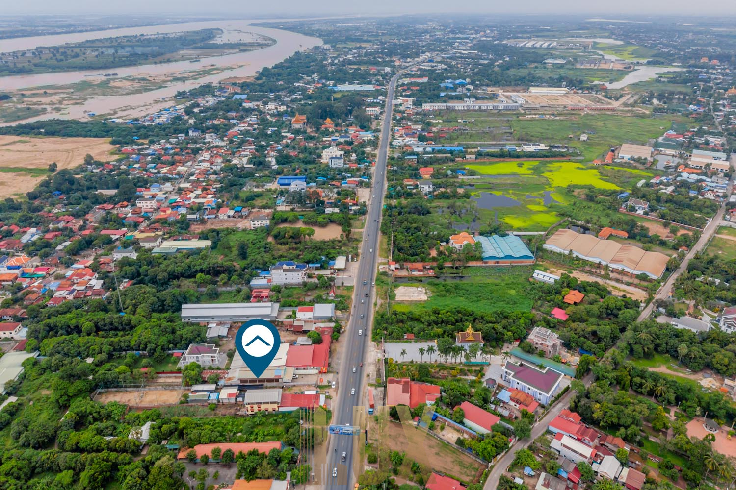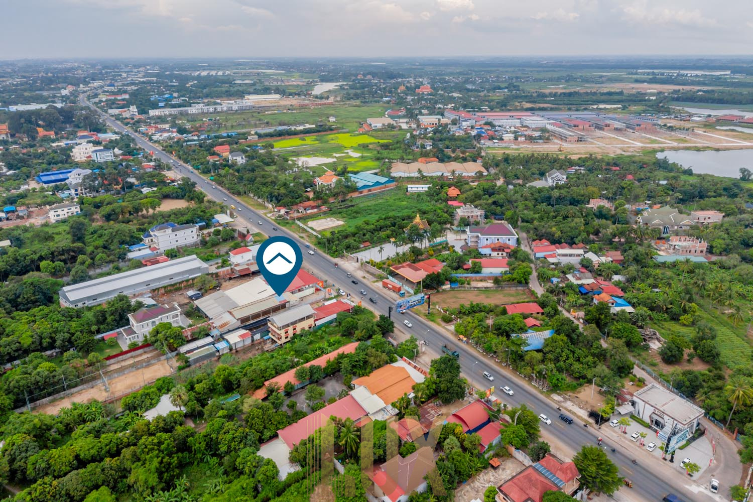 This commercial land for sale stands with paved grounds, a secure front gate, and previous construction that could be utilized either as a private home or commercial base. The spacious yard ensure utmost safety and privacy suitable for an office headquarters, or perhaps a school or recreational center. The property’s location is also strategic, right along National Road 1 in a steadily growing part of Cambodia’s capital.