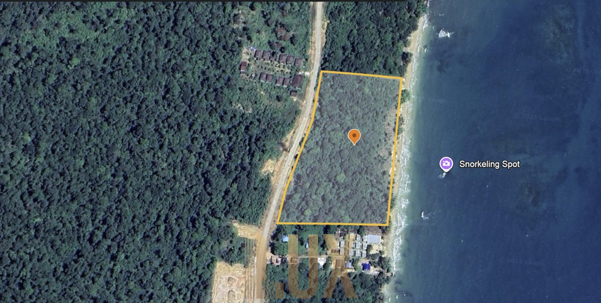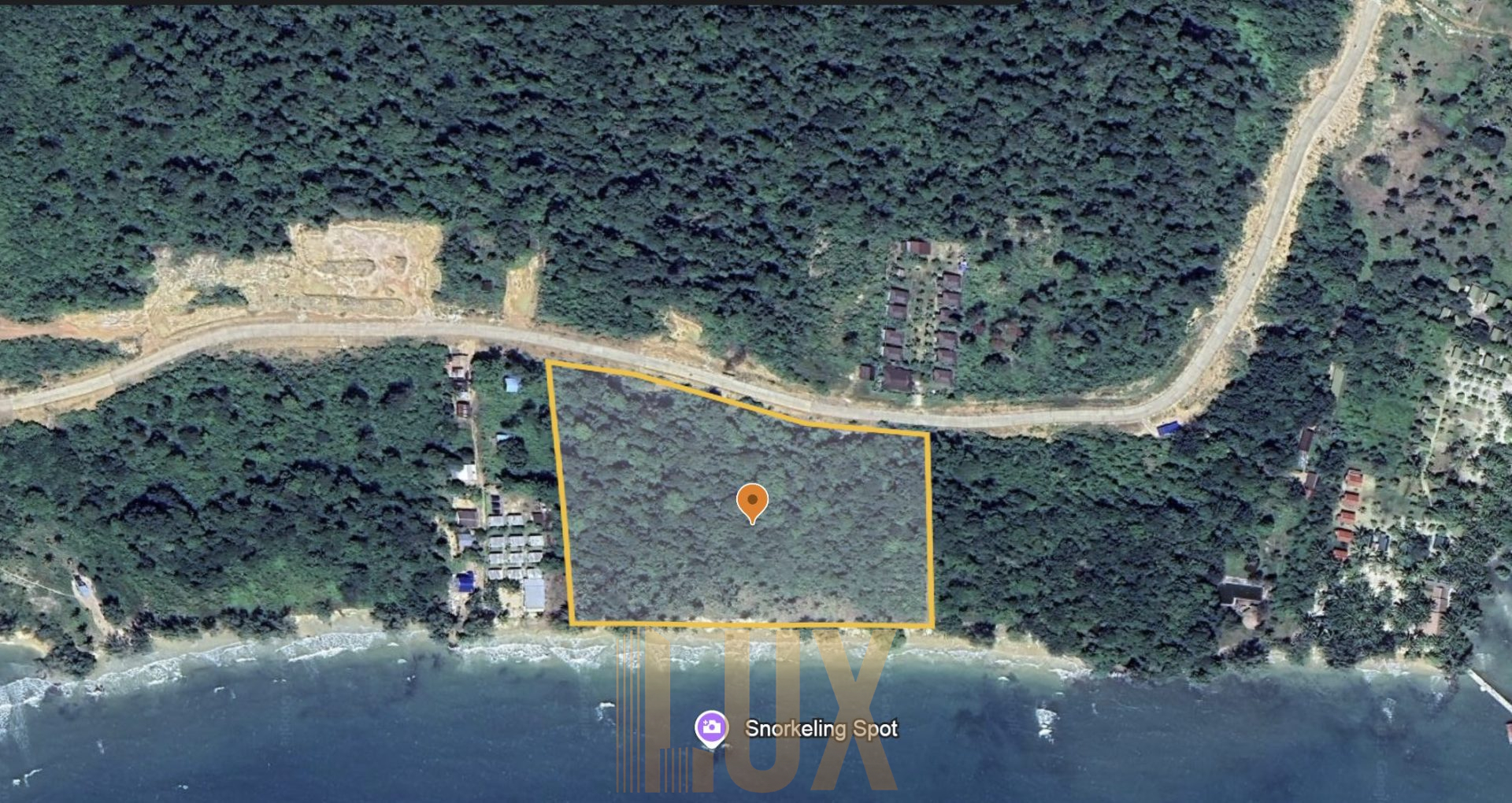 This large and rare beachfront land parcel along the pristine Palm Beach on Koh Rong offers an exceptional opportunity for visionary investors and developers. With an impressive 183.46 meters of direct open sea frontage and substantial length on both sides: 101 meters on the left and 130 meters on the right,. the property spans over 21,047 square meters, making it one of the most expansive beachfront holdings available on the island.