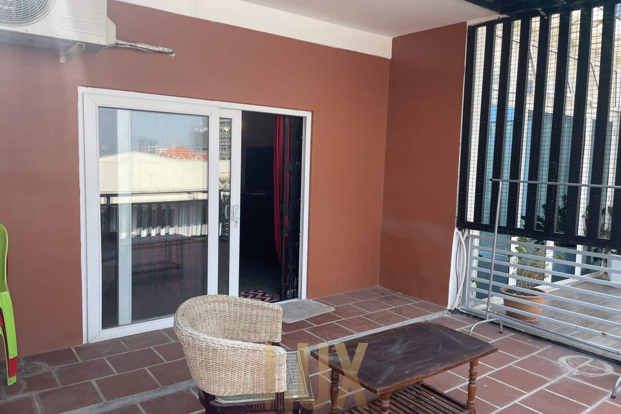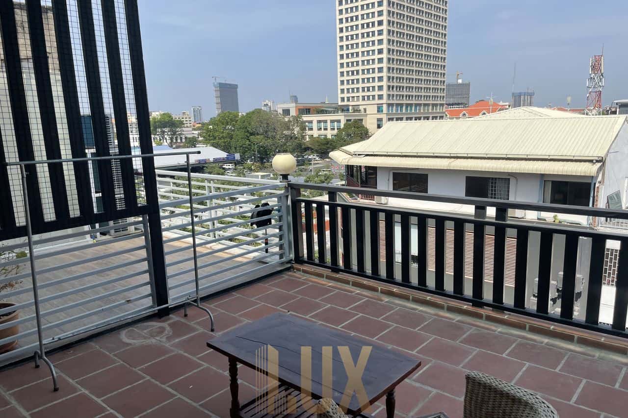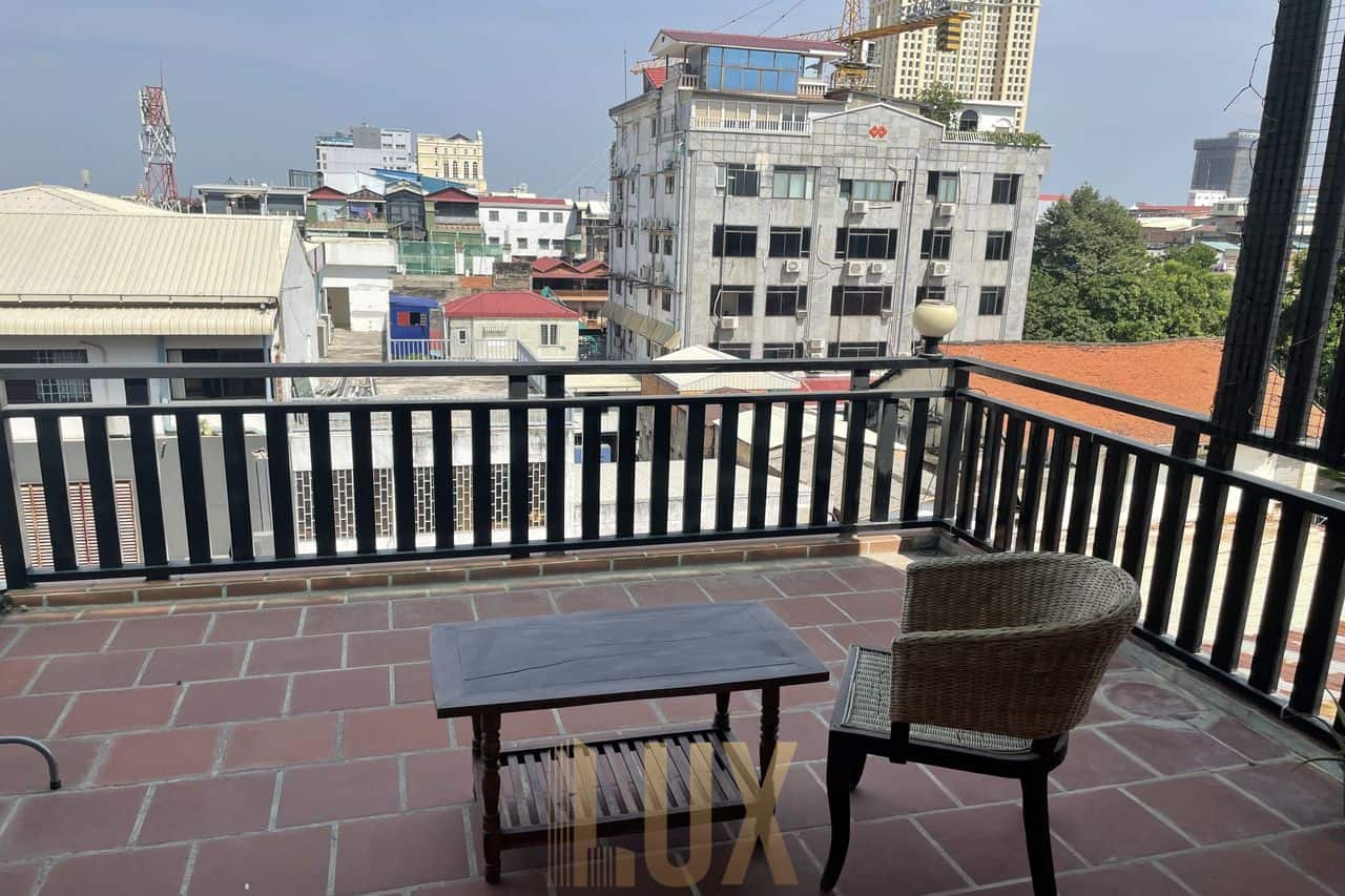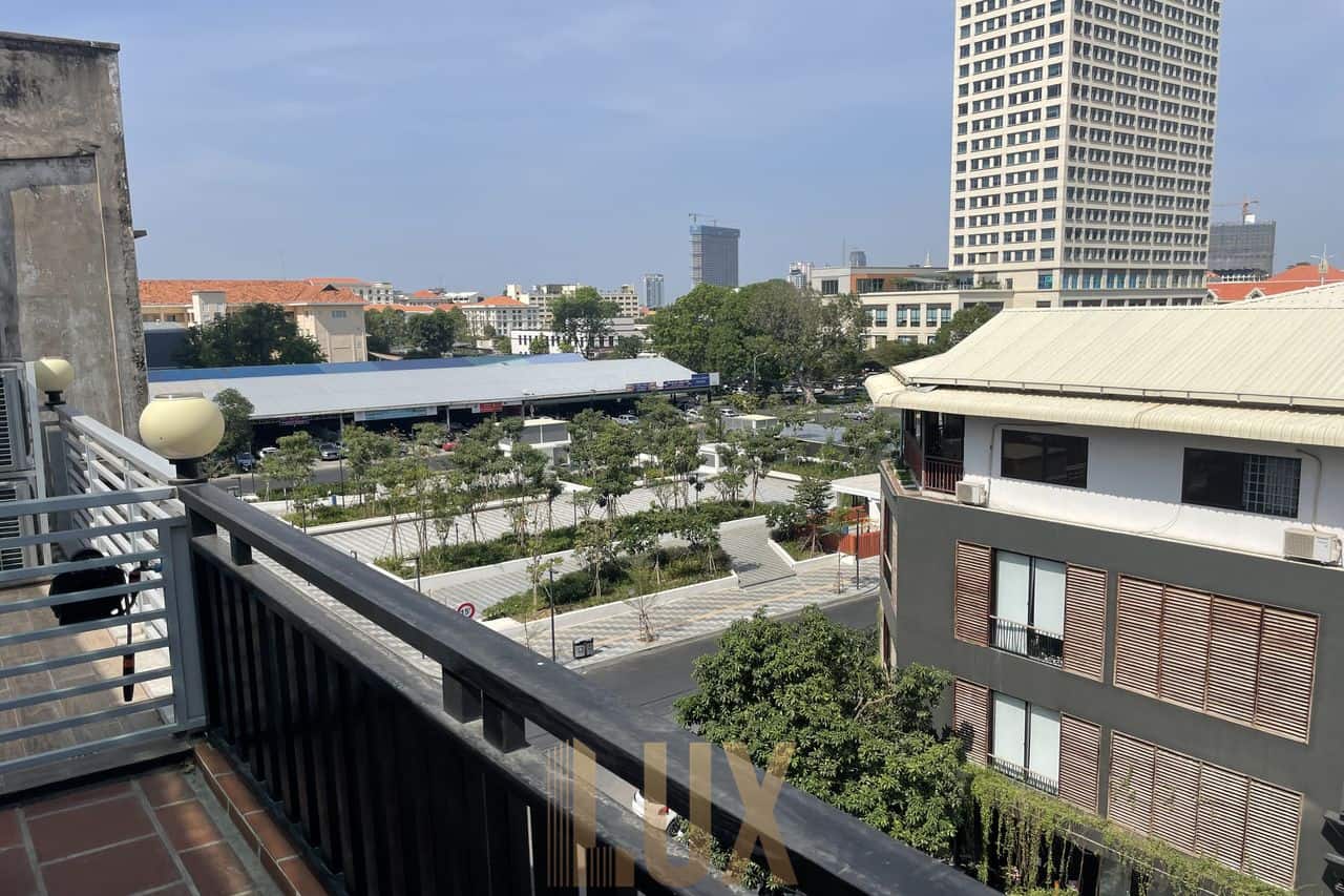 This 240 square foot duplex apartment is newly renovated and is located close to the riverside which makes it perfect for anyone looking for a comfortable place to call home. The apartment is in good condition and has a total of 2 floors. It comes with 2 bedrooms, 2 bathrooms, and 1 kitchen. In addition, the apartment comes fully furnished and includes 2 very large balconies looking over to Vattanac tower.