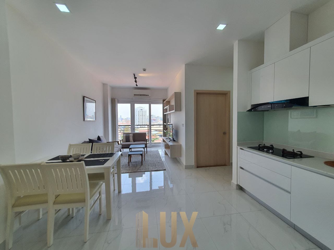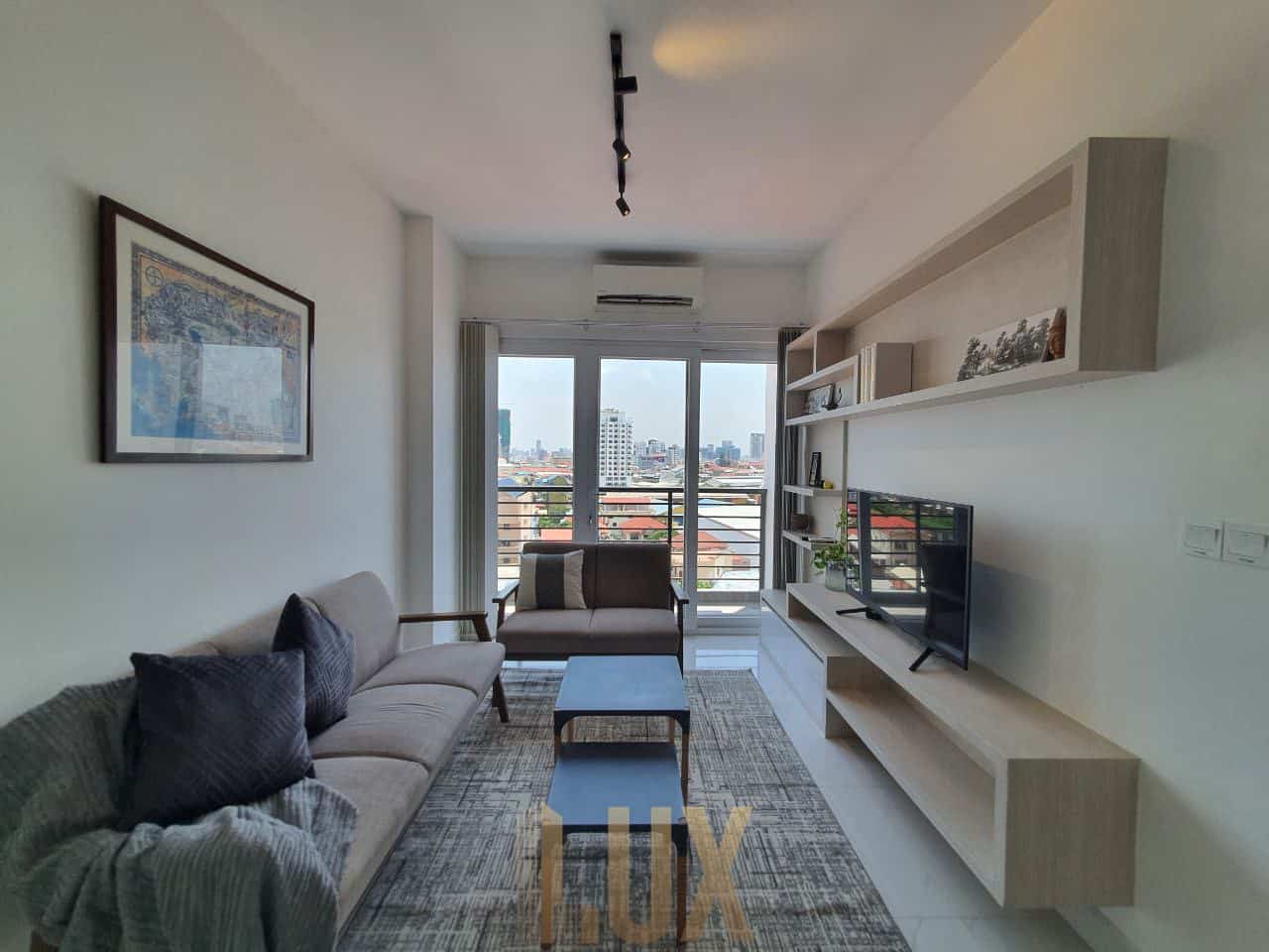 Discover urban luxury in this fully-furnished 2-bedroom, 2-bathroom corner unit apartment for sale in the vibrant Boeng Tumpun area. Enjoy the spacious living area adorned with modern furnishings, including AC units, tables, chairs, and a sofa. This corner unit offers two balconies, including a spacious corner balcony accessible from the master bedroom and a smaller one from the living room, providing ample space for relaxation and enjoying city views.