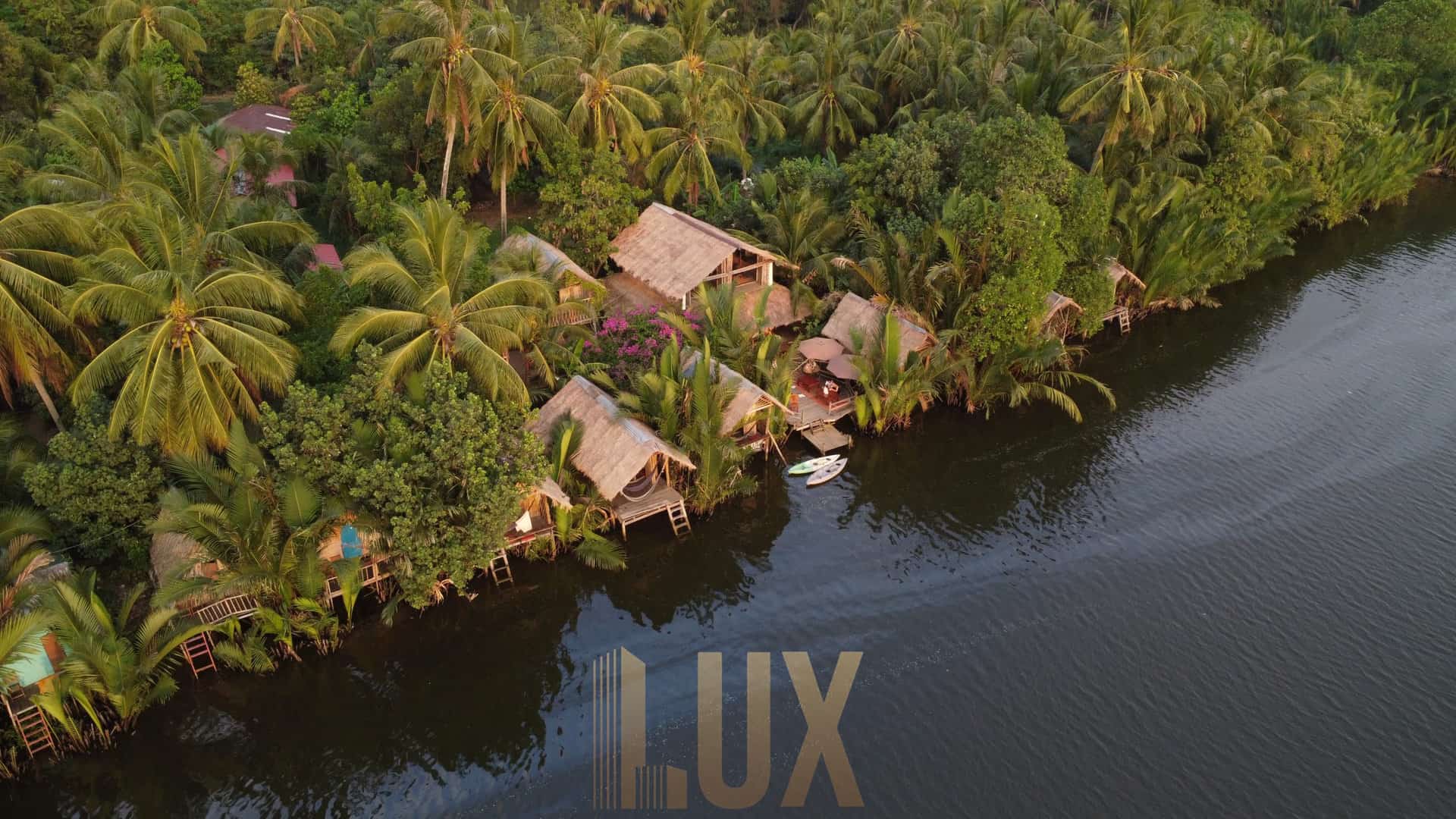 Beautifully run genuine eco resort up for sale with magnificent river and mountain views. The business is being sold with the land and has been valued accordingly to the land prices and the genuine value of the business and assets. This Eco resort is one of a kind here in Cambodia with the toilets being used for compost and adding zero pollution to Kampot river. The business has been fully operational during the covid period and runs at 70% occupancy all year round and pills a genuine passive income which makes this property ideal to purchase, make a nice tidy profit for a few years and sell once the land prices with the new road behind being built in the next 2 years.