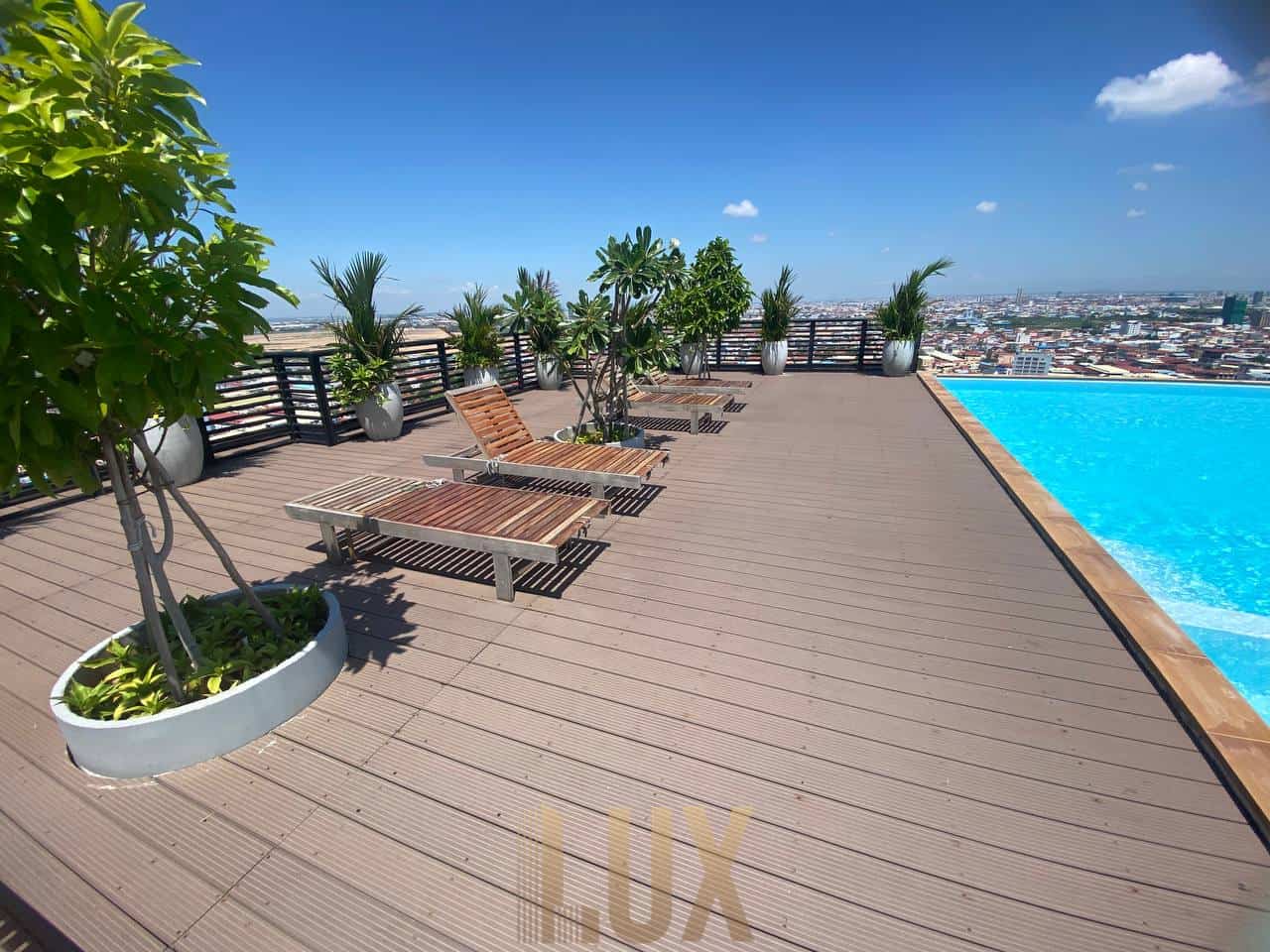 The apartment is in the Mean Chey district of Phnom Penh, Cambodia. The building has an elevator, internet, TV cable, alarm system, video security, fire alarm, fire sprinklers and backup generator.