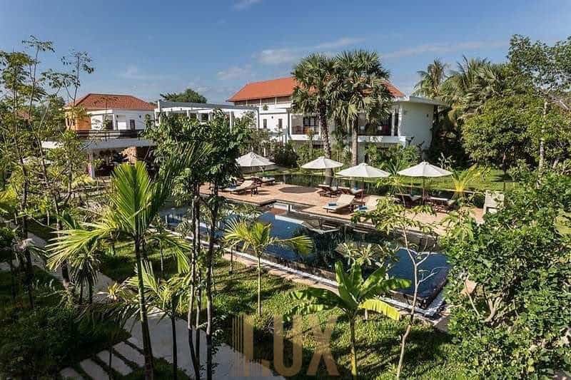 This boutique hotel is located in the Sangkat Sala Kamroeuk area, which is known for its peaceful and serene environment. The hotel boasts a total of 14 spacious and well-appointed bedrooms that are perfect for guests who are looking for a comfortable and luxurious stay. The hotel also features two beautiful swimming pools that are perfect for guests who want to relax and unwind.