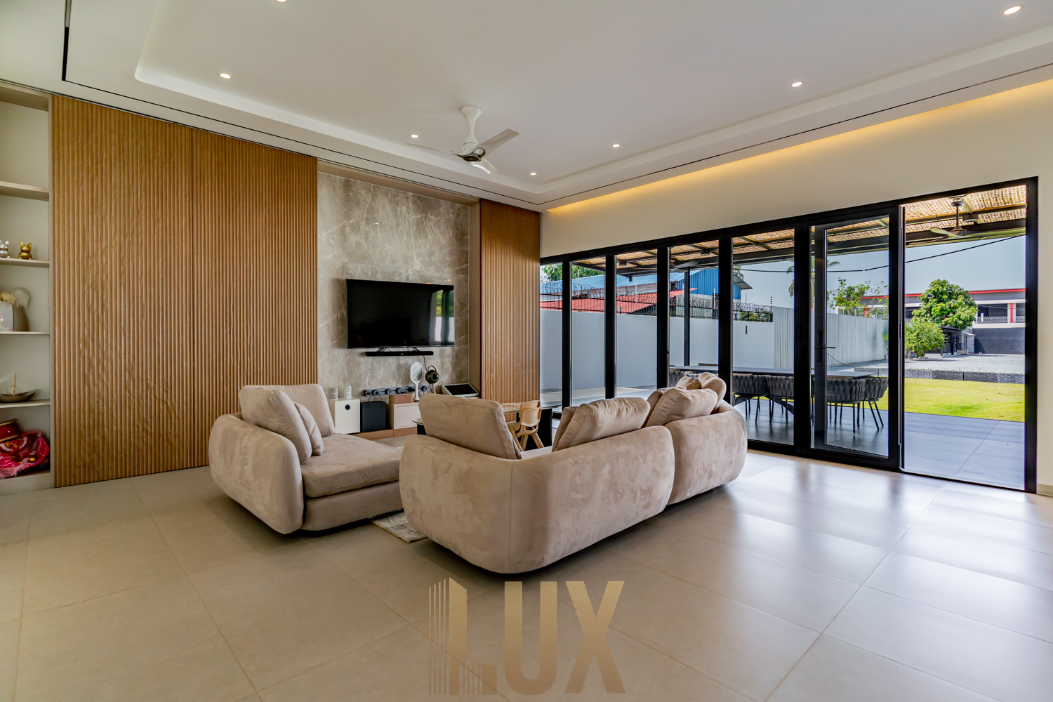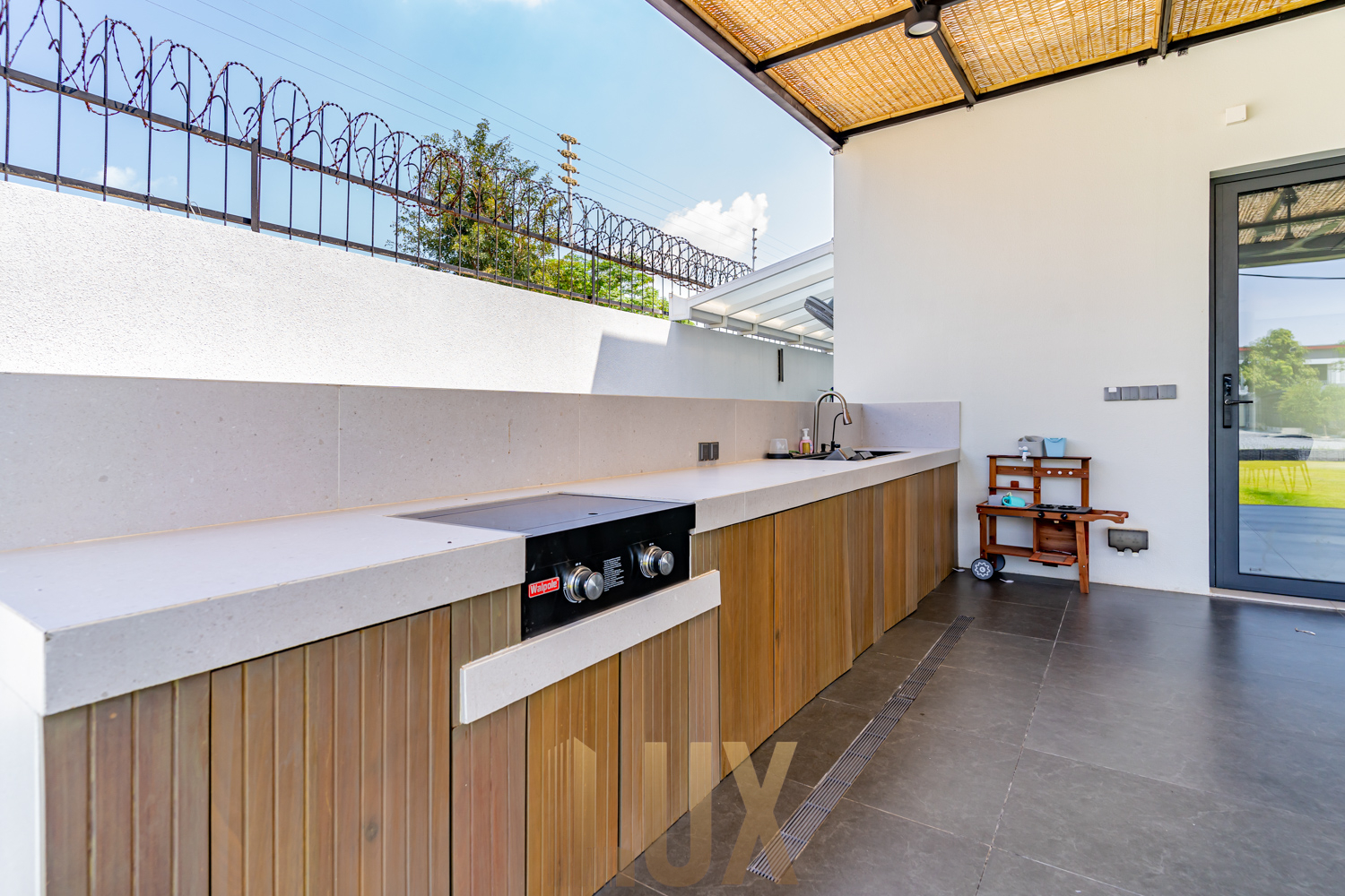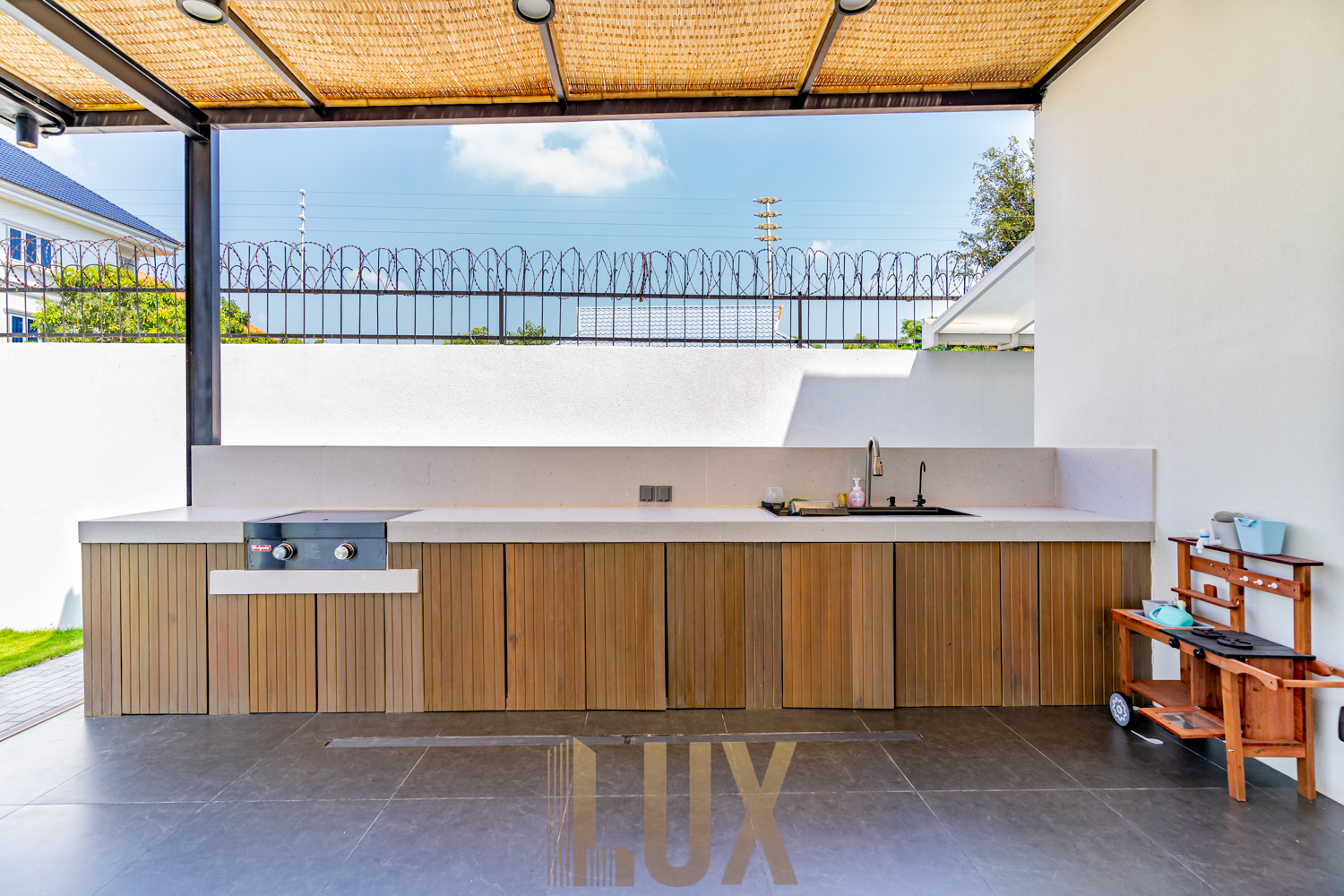 This expansive villa is a modern sanctuary that will bathe every moment in refreshing amounts of natural light and plenty of fresh air. Sleek design ensures a seamless blend of indoor and outdoor living, with open spaces on the inside to provide restfulness and connection, and vibrant spots outside for dining, cooking, and even playing together as a close-knit household. It’s the ideal property for long-term family living, and even an eventual source of rental income, presenting a tranquil retreat where modern living and closeness to nature converge in an epitome of comfort.
