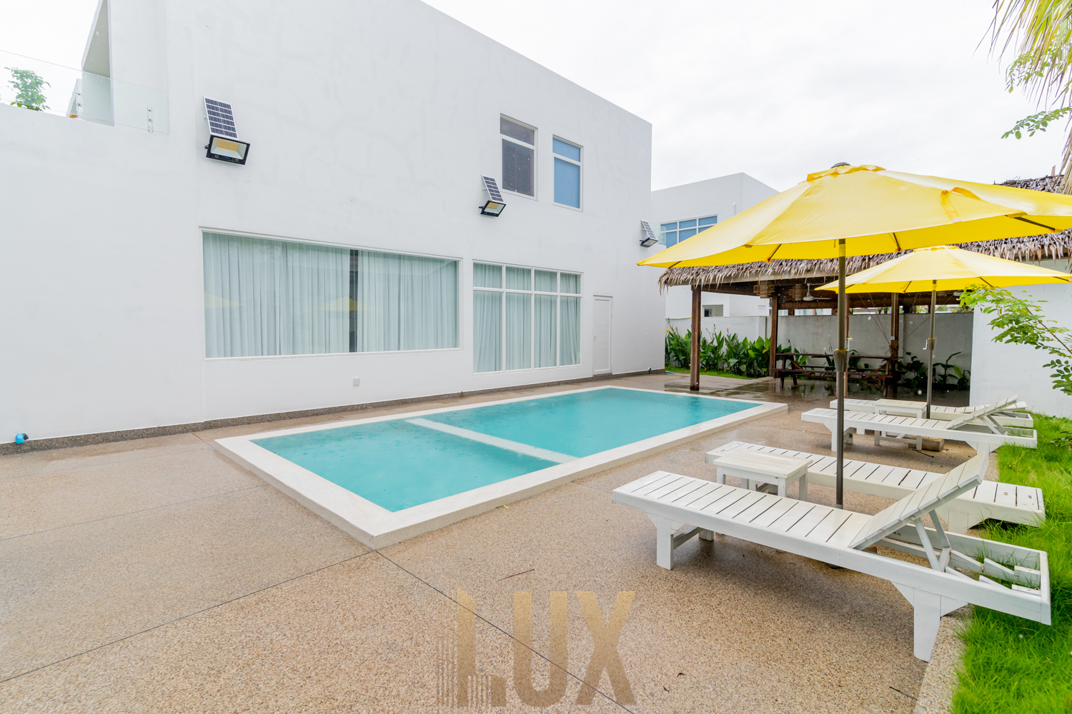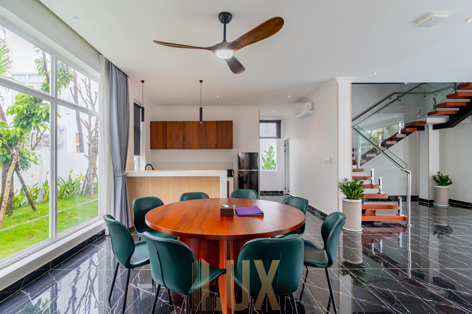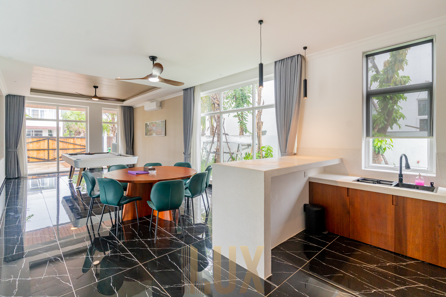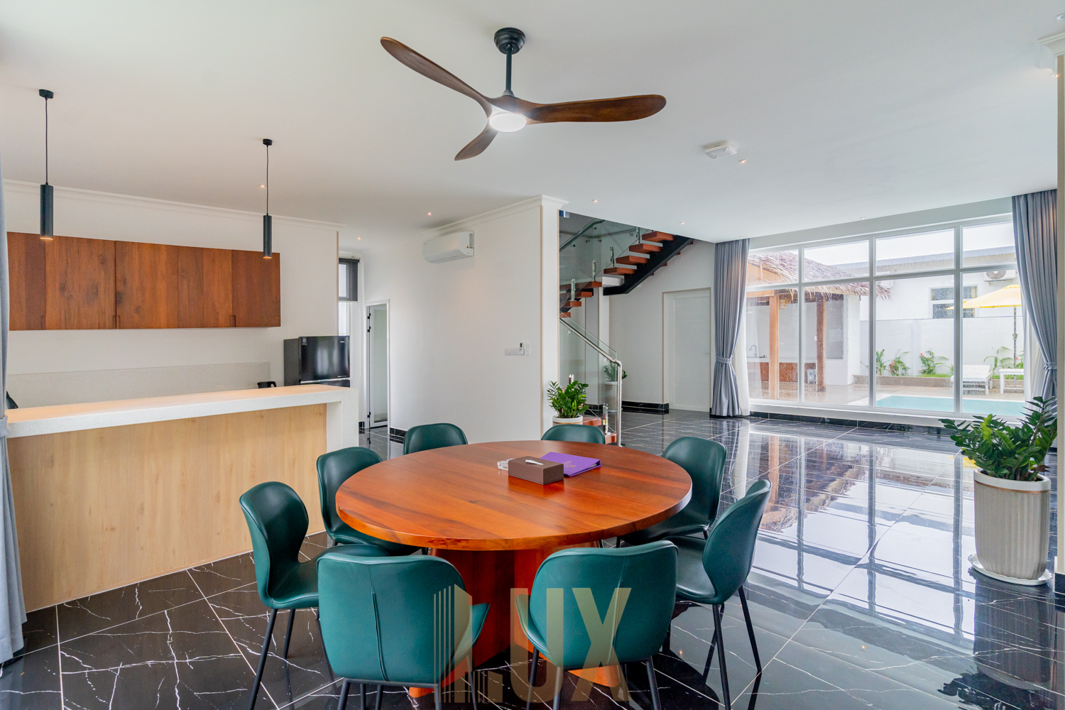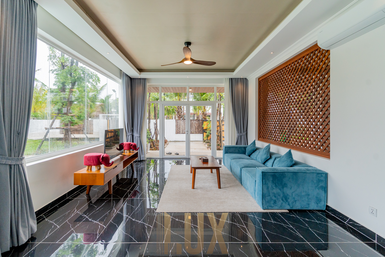 It would be easy to envision every day as a dream in this stunning three-bedroom villa now up for sale—the chance for your own private tropical getaway! Fully furnished, this property is a stylish home featuring warm wooden accents and polished tile flooring for a sleek, minimalist atmosphere further accentuated by the open layout, which helps to foster connection and relaxation. The spacious living area, modern kitchen, and beautifully designed bedrooms ensure maximum comfort for all times of the day and for all members of the household, whether the property is intended as a private residence or as a commercial investment. Of course, this idyllic setting is complemented by vibrant outdoor spaces: a sparkling pool, garden gazebo, and a priceless view of the Koh Kong beach.