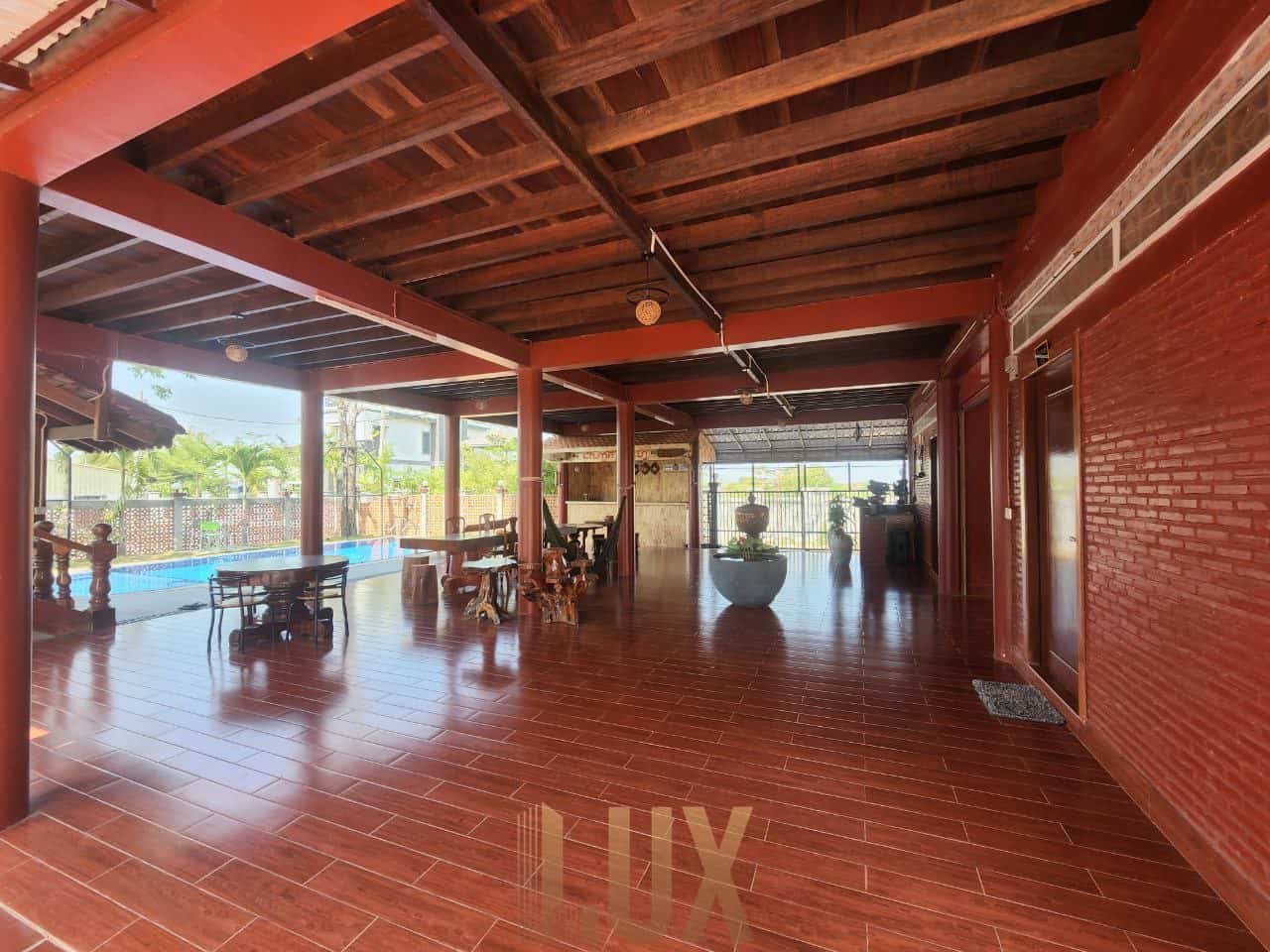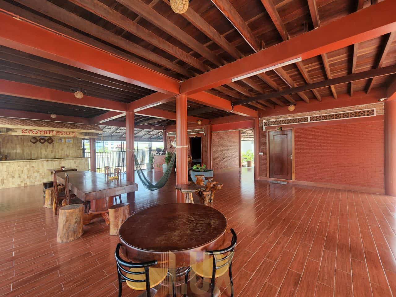 Lux Realty is proud to present an exquisite Khmer Wooden House for sale, situated in the scenic area of Makprang, Kampot. This beautifully crafted residence is built on a generous 540 sqm plot of land, with a building size of 168 sqm. It is a fully functional business with regular occupancy, and it has a bar and restaurant capabilities, with superior craftsmanship.
