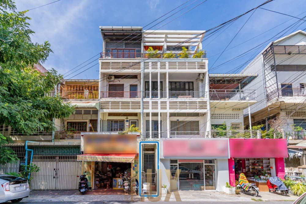 The upper level connects through a sleek metal staircase, leading to cozy bedrooms that provide privacy and calm within the city. Ideal for those looking for a stylish move-in-ready home or a rental property in one of Phnom Penh’s most convenient neighborhoods.