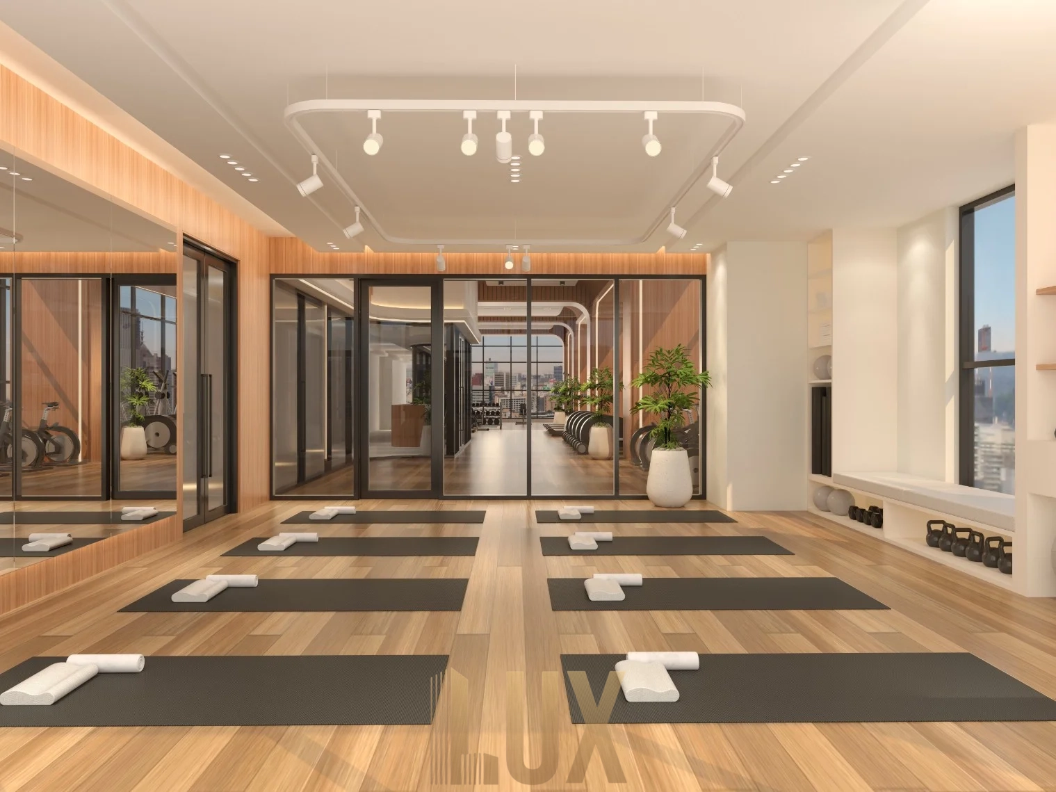 - 33rd-floor wellness hub: gym, steam room, sauna, jacuzzi, plus a yoga studio