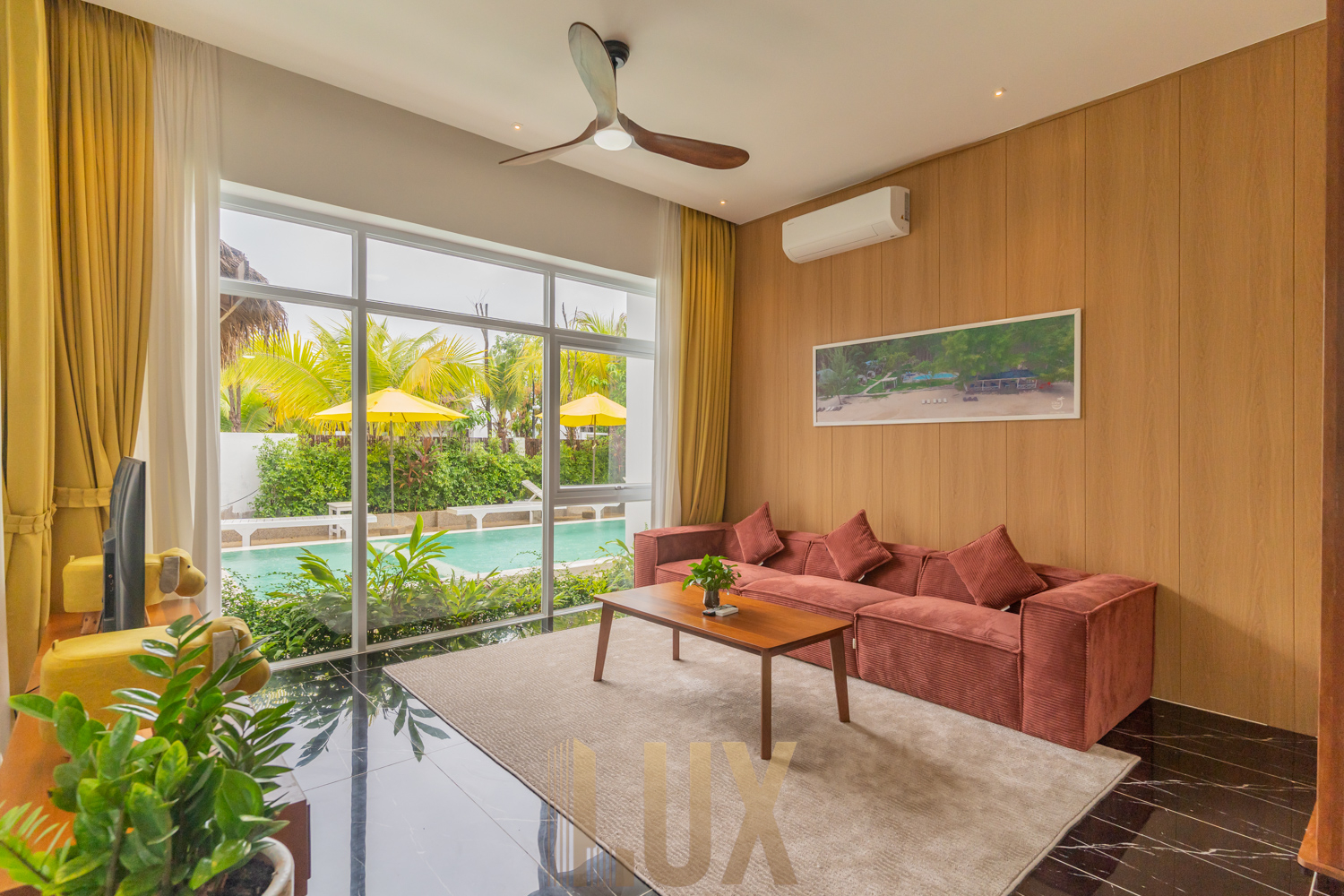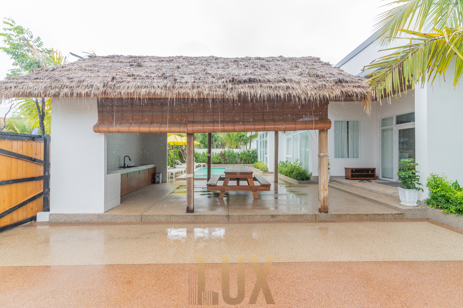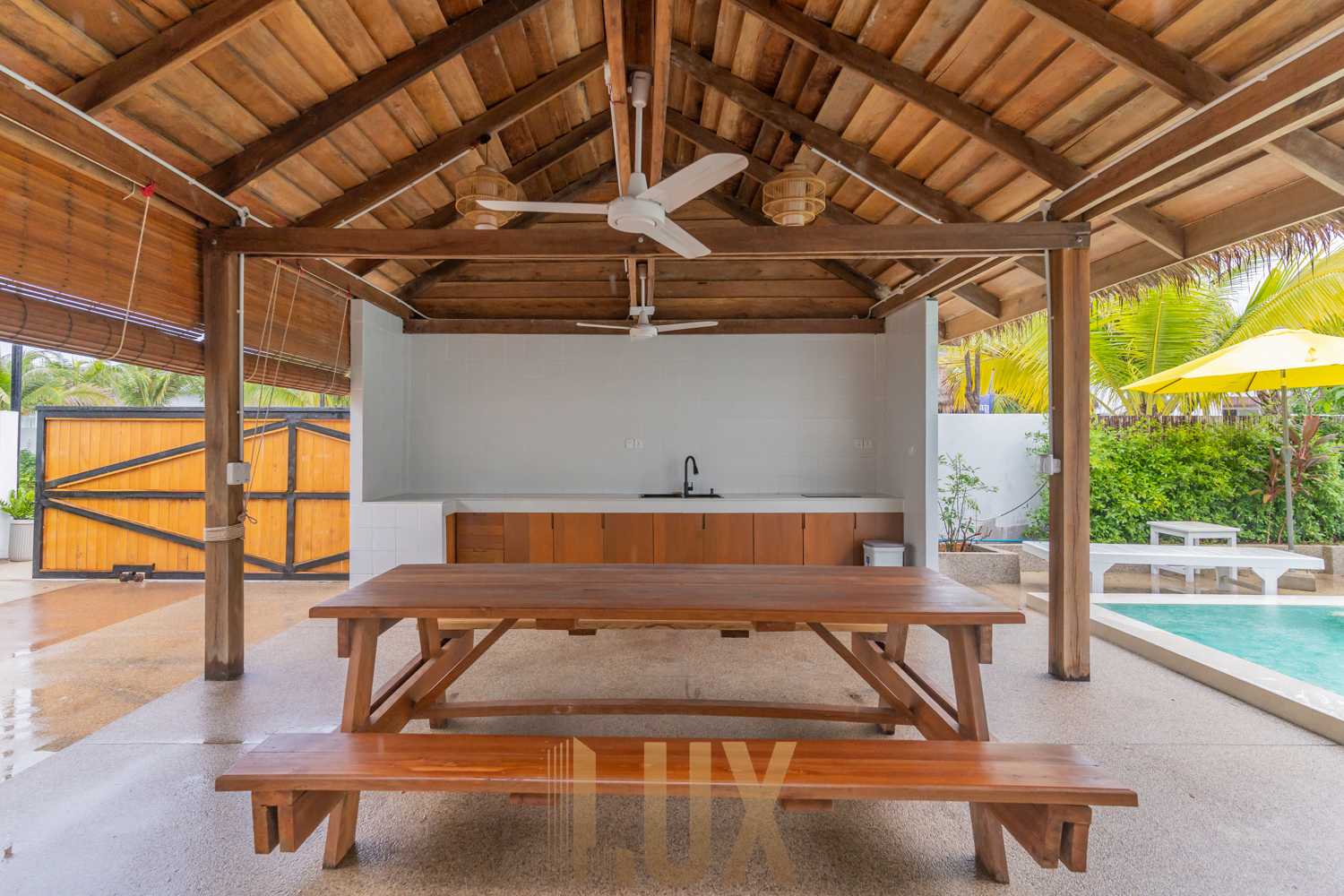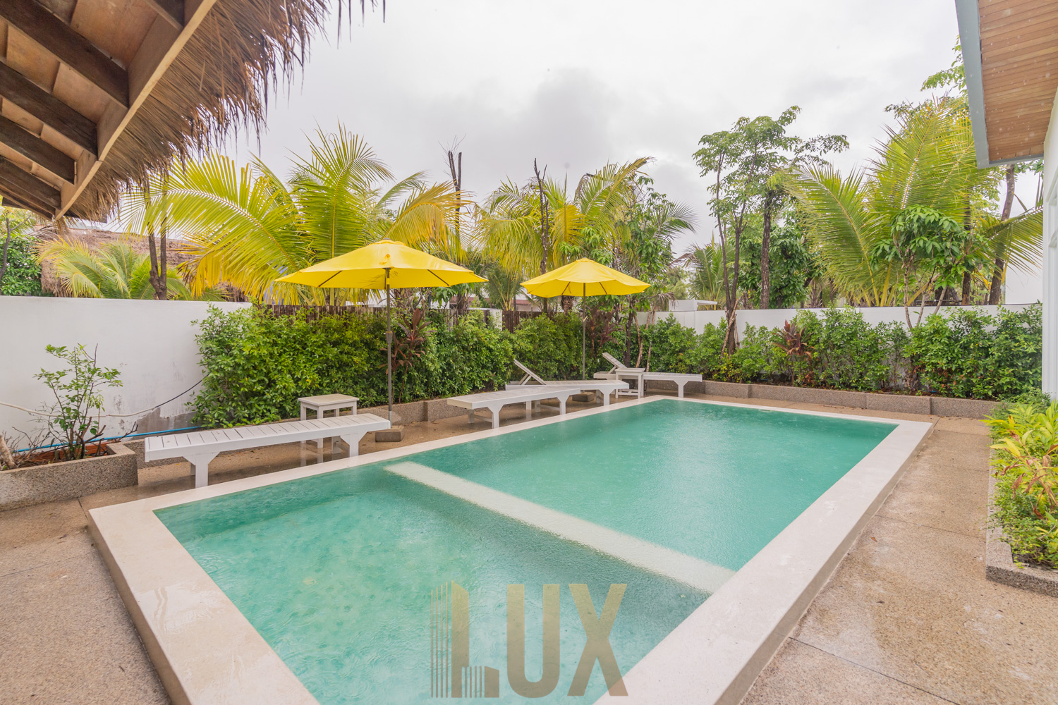 This stunning villa for sale offers a gorgeous blend of modern comforts and the prospect of your own tropical escape. Inside, you’ll find a beautifully styled interior with warm wooden accents, polished tile flooring, and an open layout to ensure a relaxing and social atmosphere. Four (4) bedrooms ensure plenty of room to accommodate the entire household, whether the buyer will be settling here long-term, utilizing it as a vacation home, or buying as an investment for rental/Airbnb income. In addition to the inviting living area and cozy bedrooms, the property includes a private swimming pool with an airy gazebo nearby, perfect for providing opportunities for outdoor relaxation. Best of all, you can look forward to breathtaking views of the beach to serve as a serene backdrop.