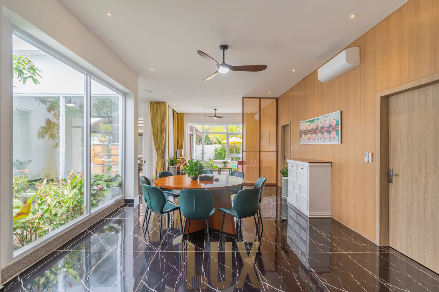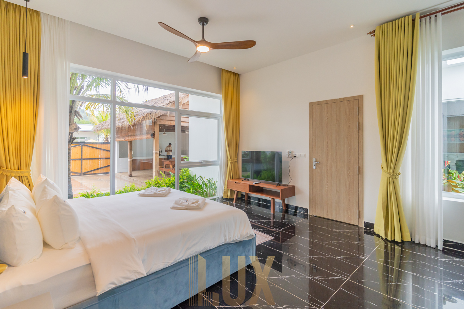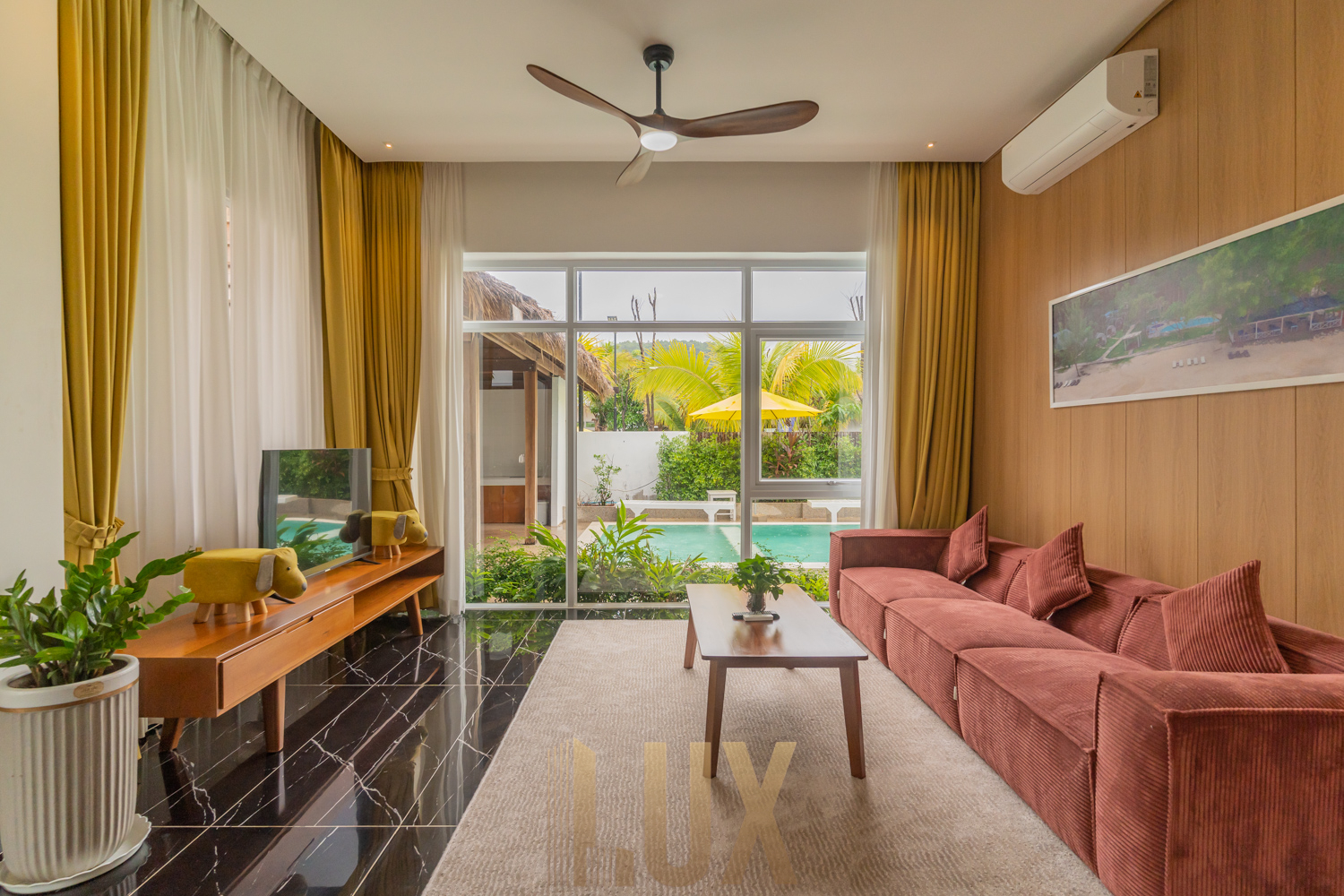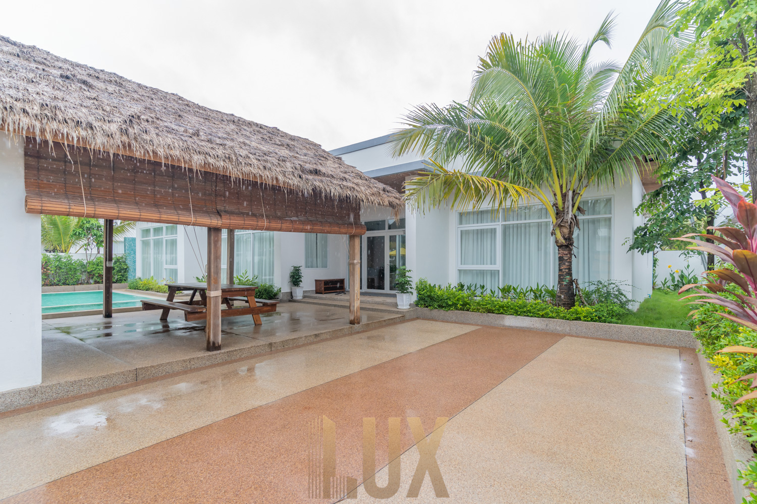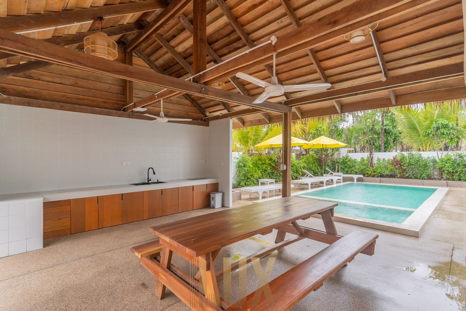 This stunning villa for sale offers a gorgeous blend of modern comforts and the prospect of your own tropical escape. Inside, you’ll find a beautifully styled interior with warm wooden accents, polished tile flooring, and an open layout to ensure a relaxing and social atmosphere. Four (4) bedrooms ensure plenty of room to accommodate the entire household, whether the buyer will be settling here long-term, utilizing it as a vacation home, or buying as an investment for rental/Airbnb income. In addition to the inviting living area and cozy bedrooms, the property includes a private swimming pool with an airy gazebo nearby, perfect for providing opportunities for outdoor relaxation. Best of all, you can look forward to breathtaking views of the beach to serve as a serene backdrop.