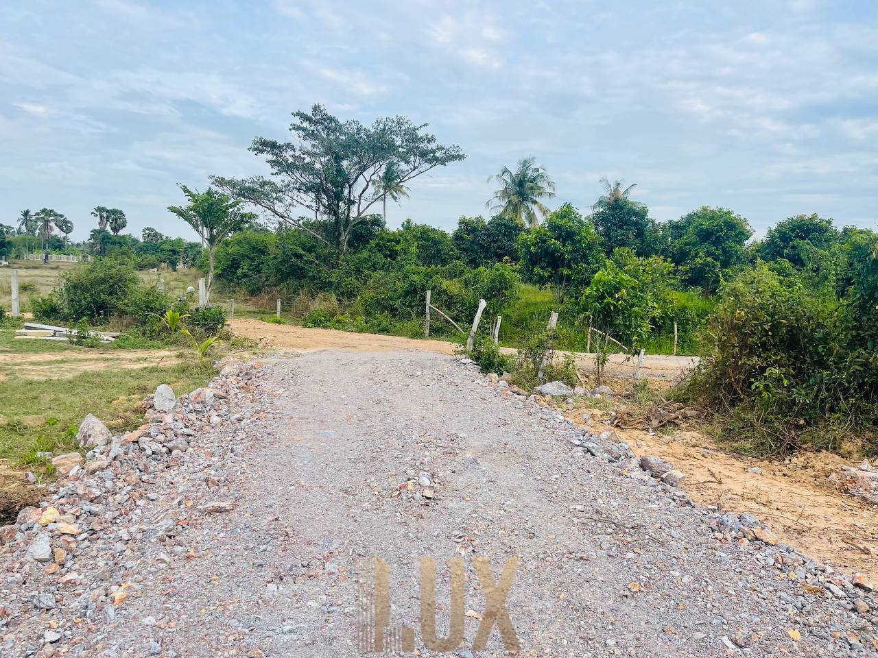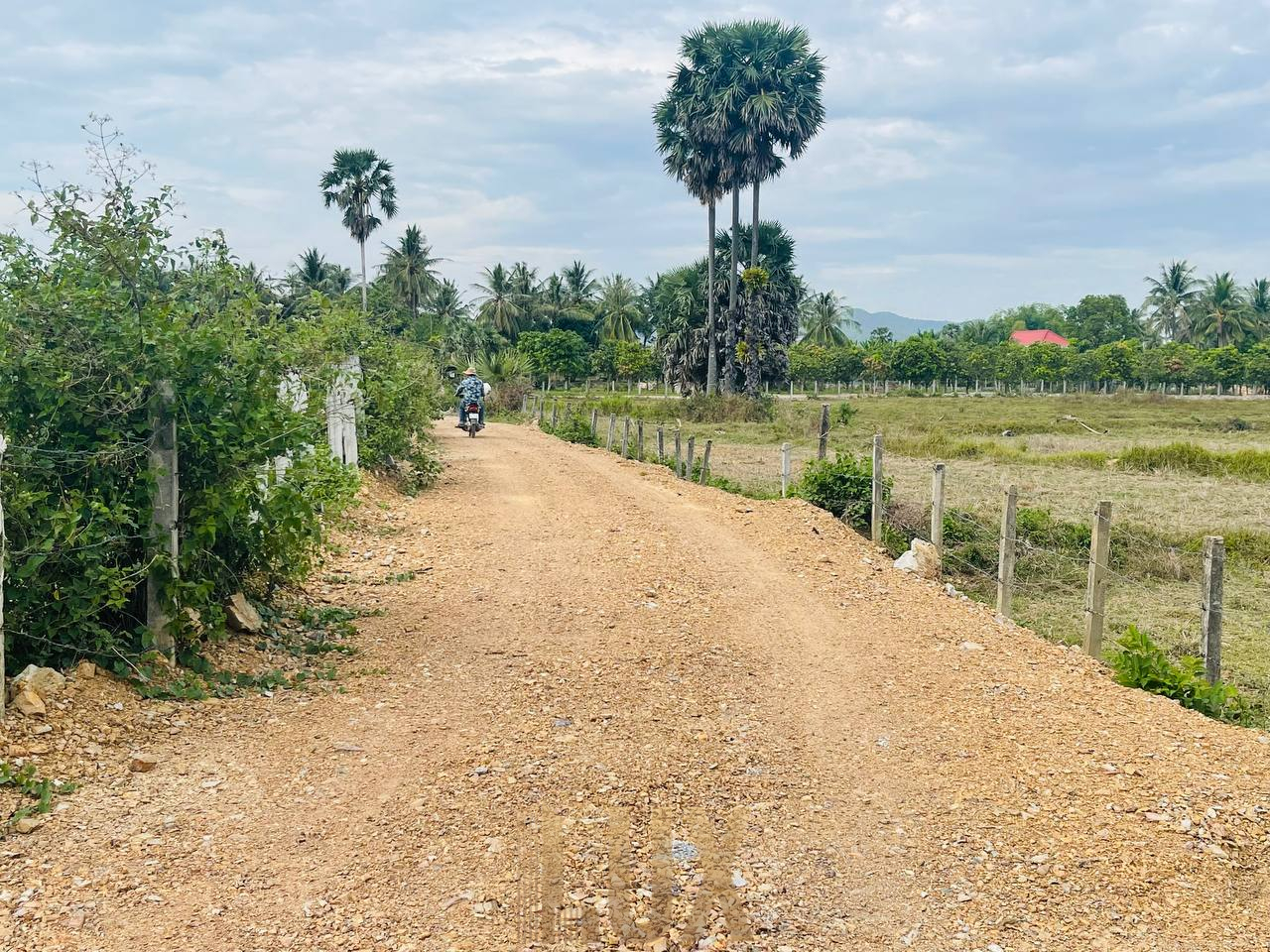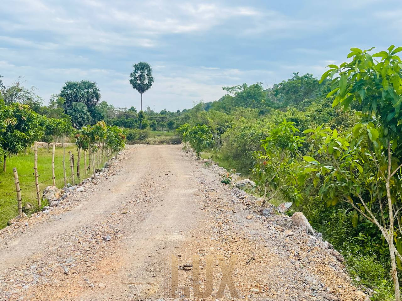 This land is approx. 800m by dirt road from the main road, National Road 33A. Much of the land surrounding this land are either residential/vacation homes or fruit farms. There are also a number of resorts nearby. It is 10mins (8km) from Kep beach.