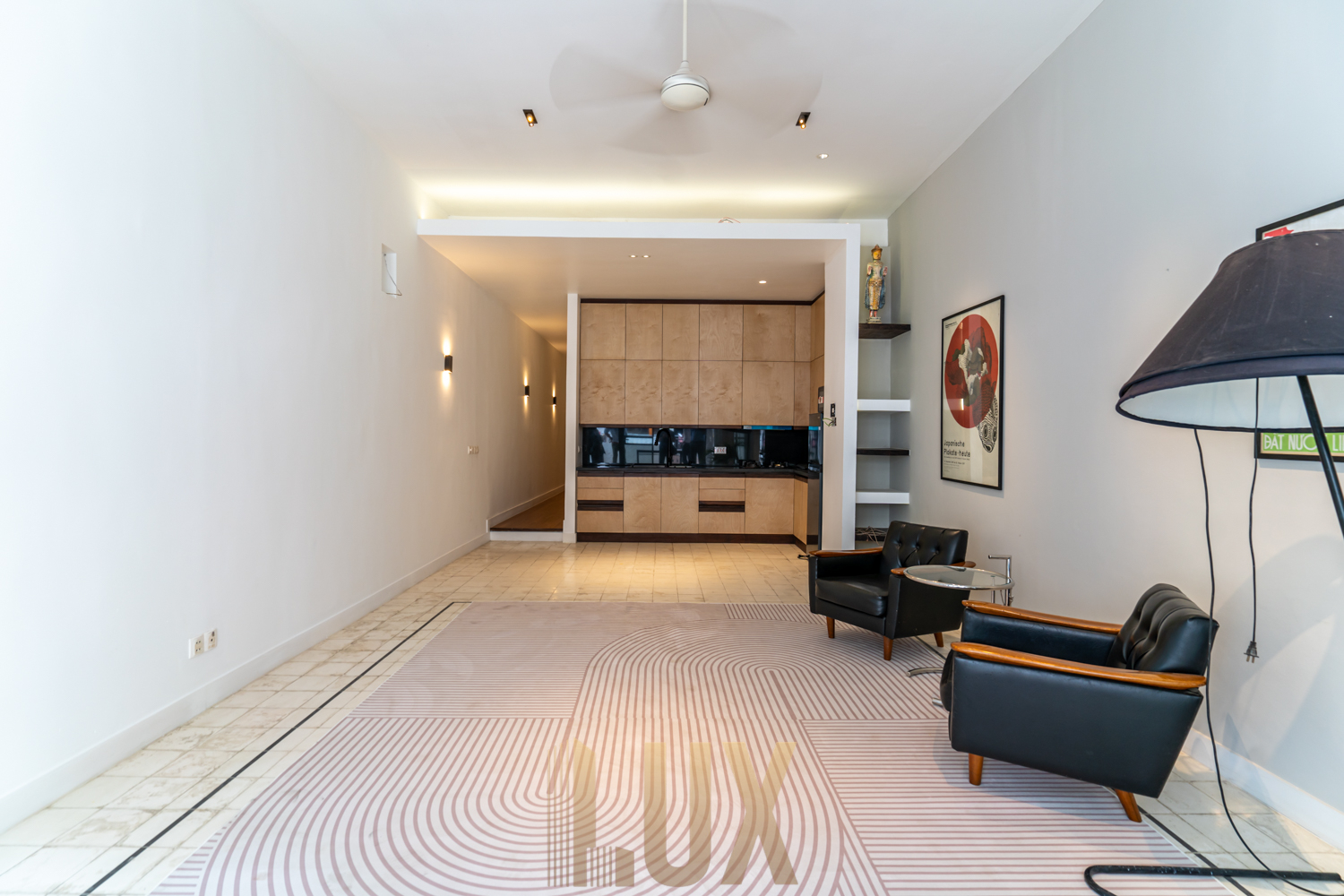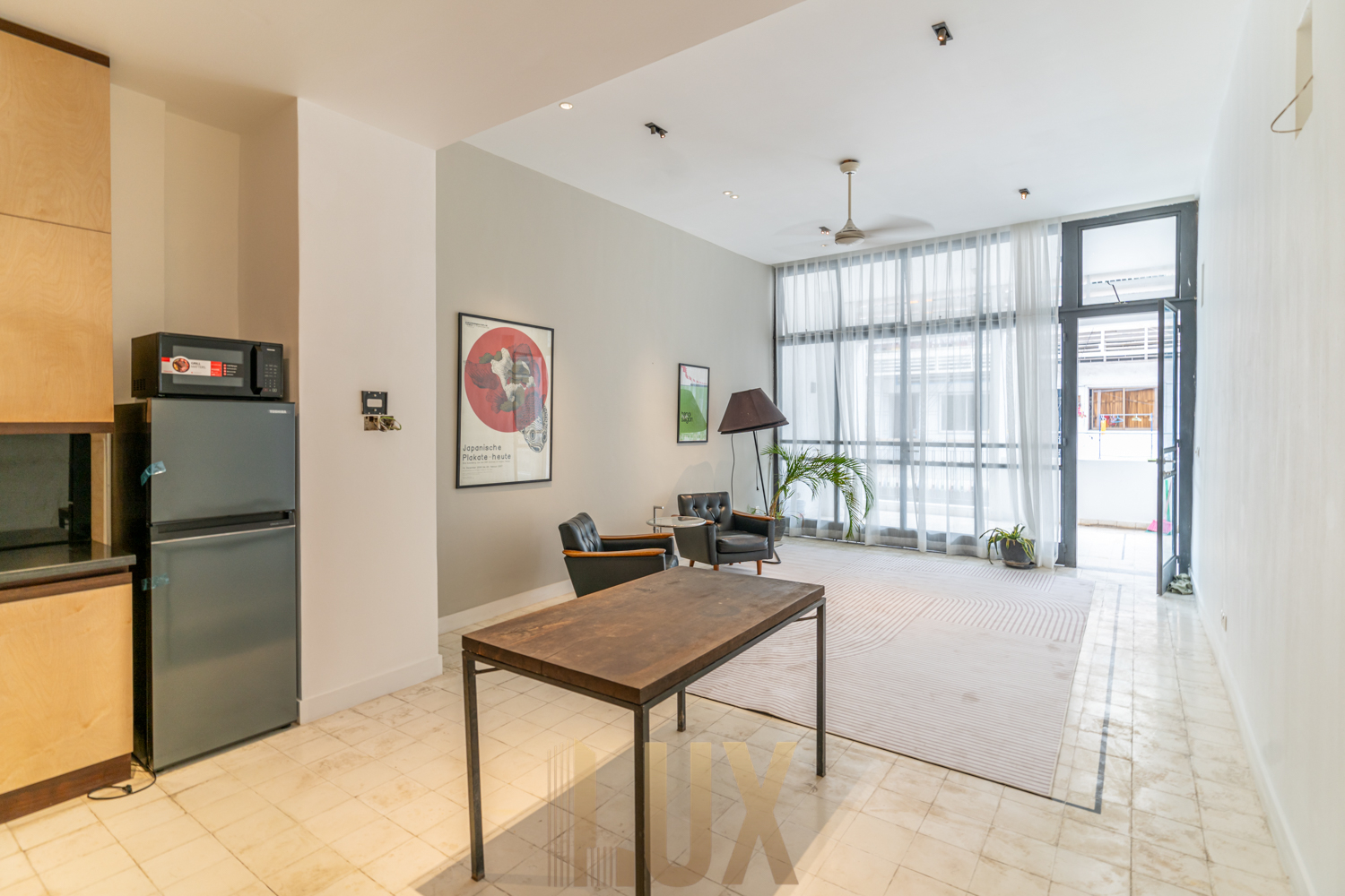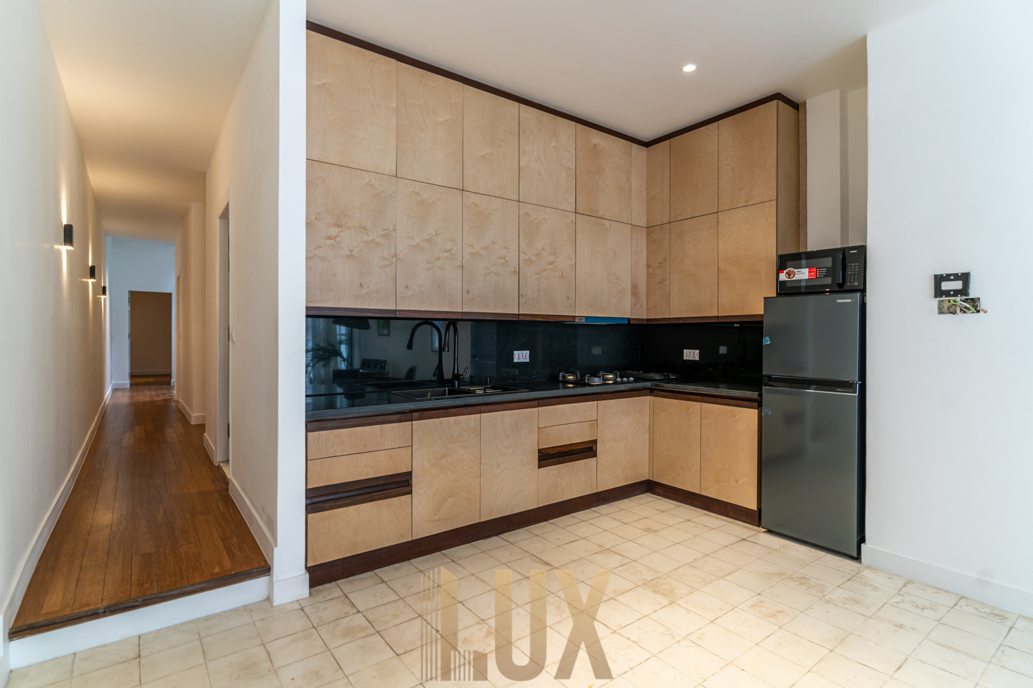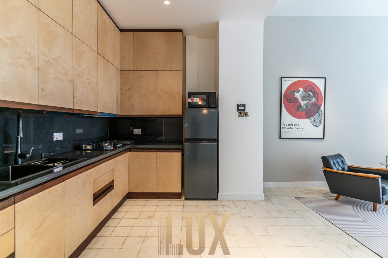 This renovated unit in Phnom Penh would surely prove to be a safe, convenient, and not to mention stylish abode for city living. It features living basics, such as a built-in kitchen utility counter, a large refrigerator, relaxing armchairs, and bathroom fixtures, while the rest of the unit awaits your choice of furniture and appliances. It is a renovated space within a colonial building, giving you the best of both worlds as you explore all that the big city has to offer in terms of trends and retail destinations while also appreciating its rich history and unique cityscape.
