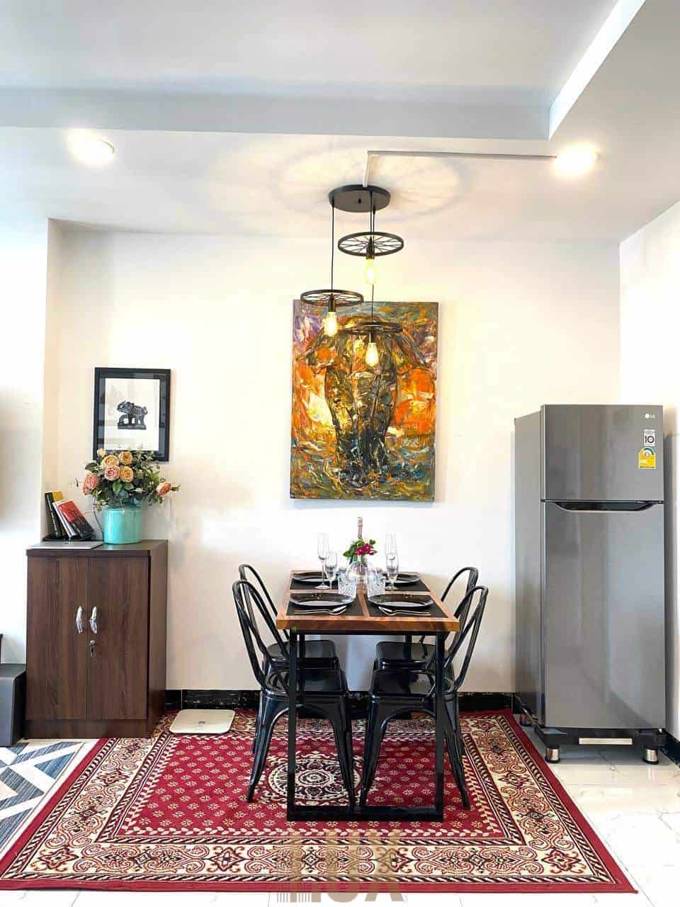 A Petite modern style western condominium designed to make you feel like you never left your home. the apartment has an artistic flair with it personalised tile floors and modern design making it an ideal home for anyone visiting phnom penh to work for a short or long length of time